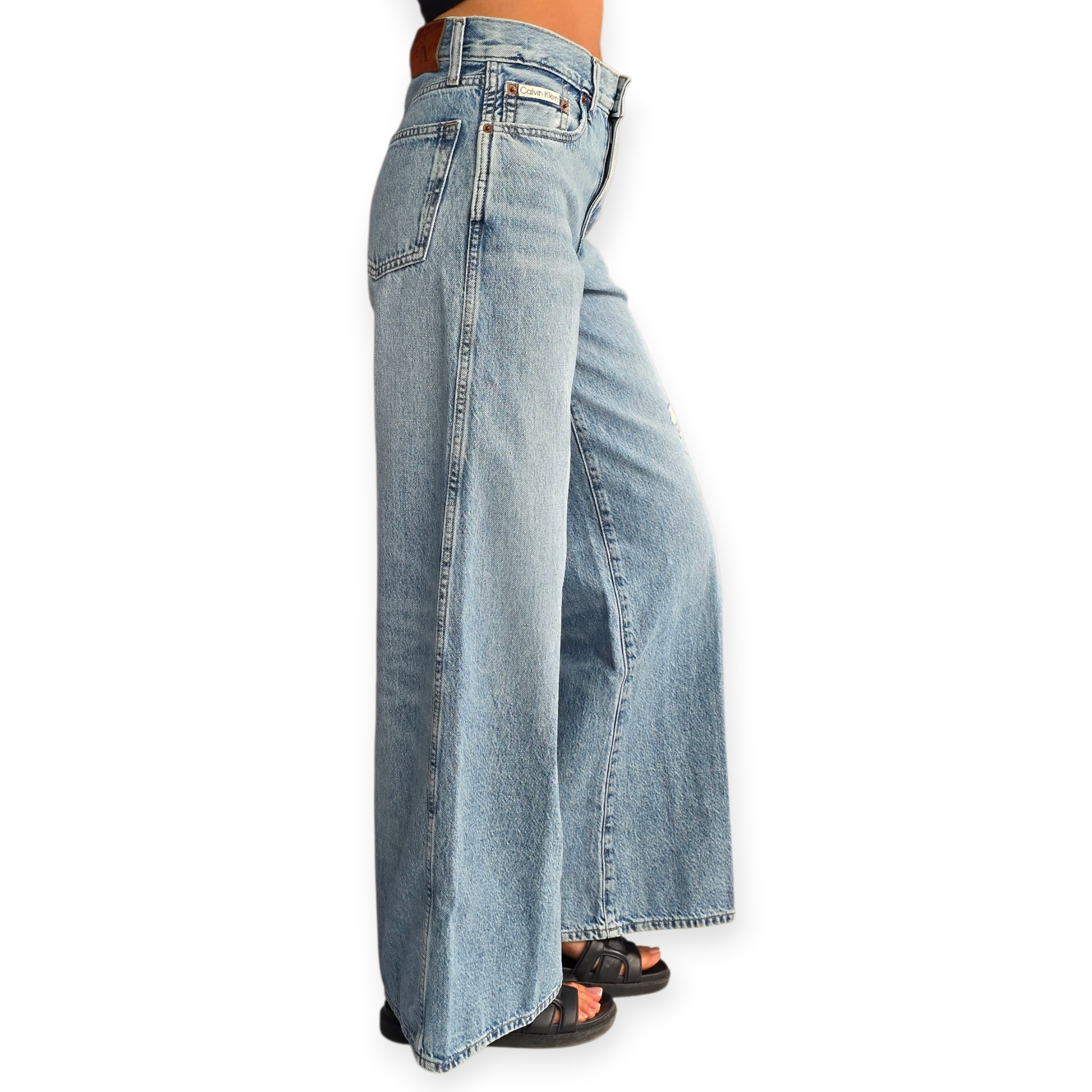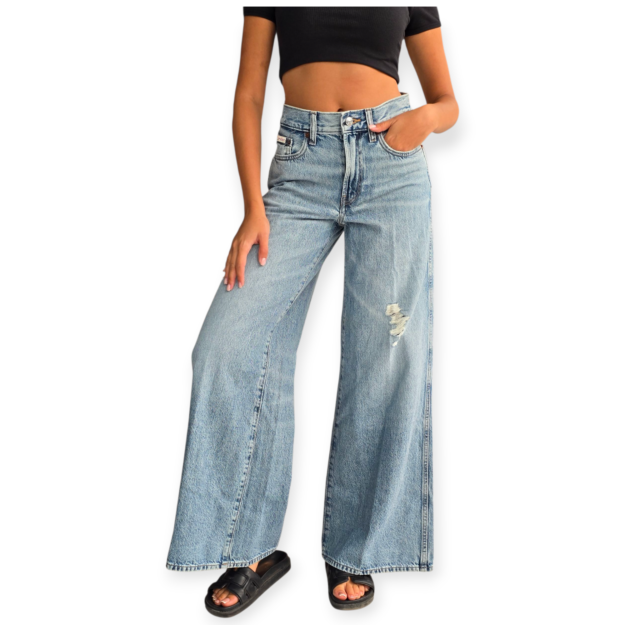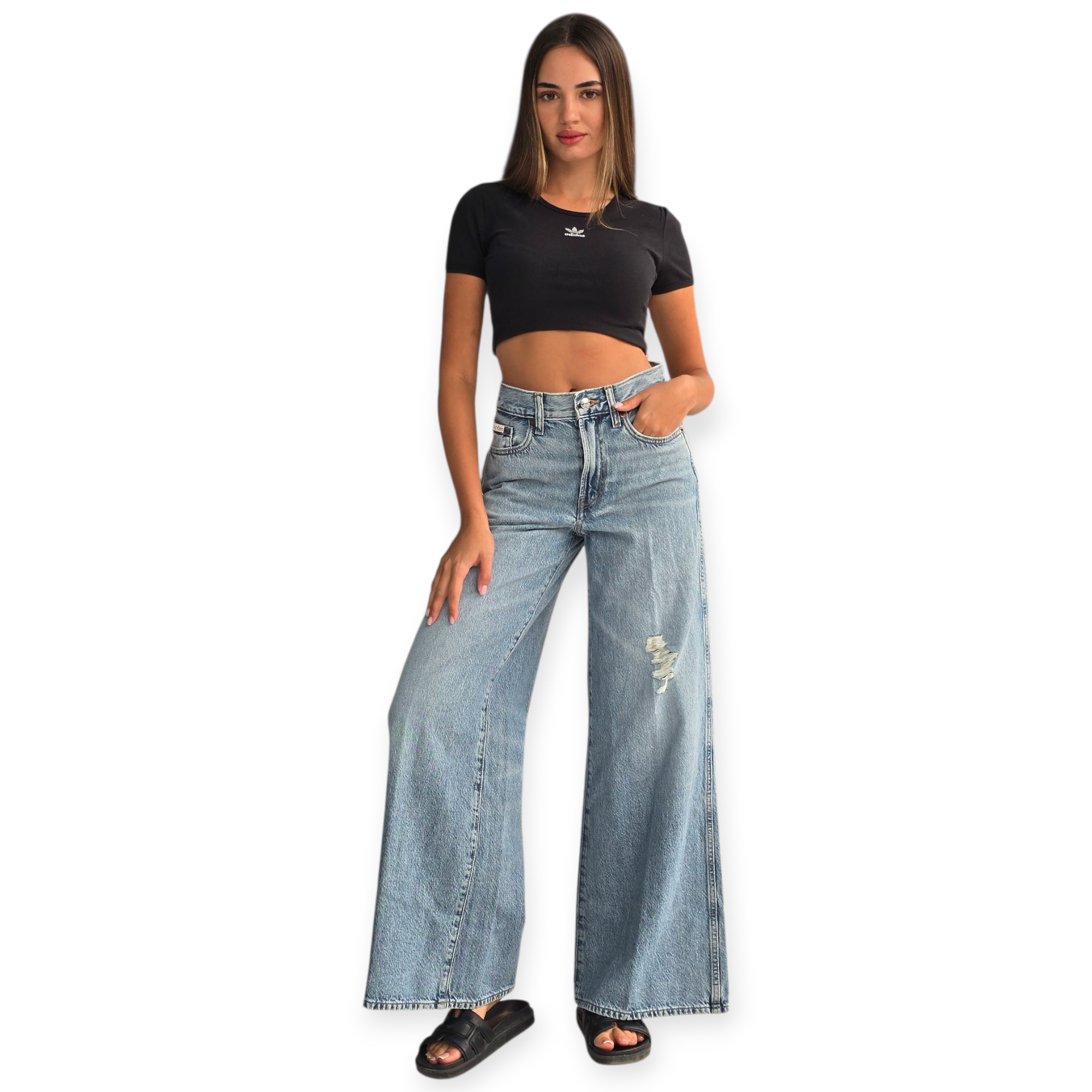 ג’ינס סופר רחב לנשים של calvin klein מדגם broadway – שיא הסטייל בגזרה נמוכה עם לוק אורבני משוחרר. מושלם לשילוב עם קרופ טופ או טי שירט קלילה.