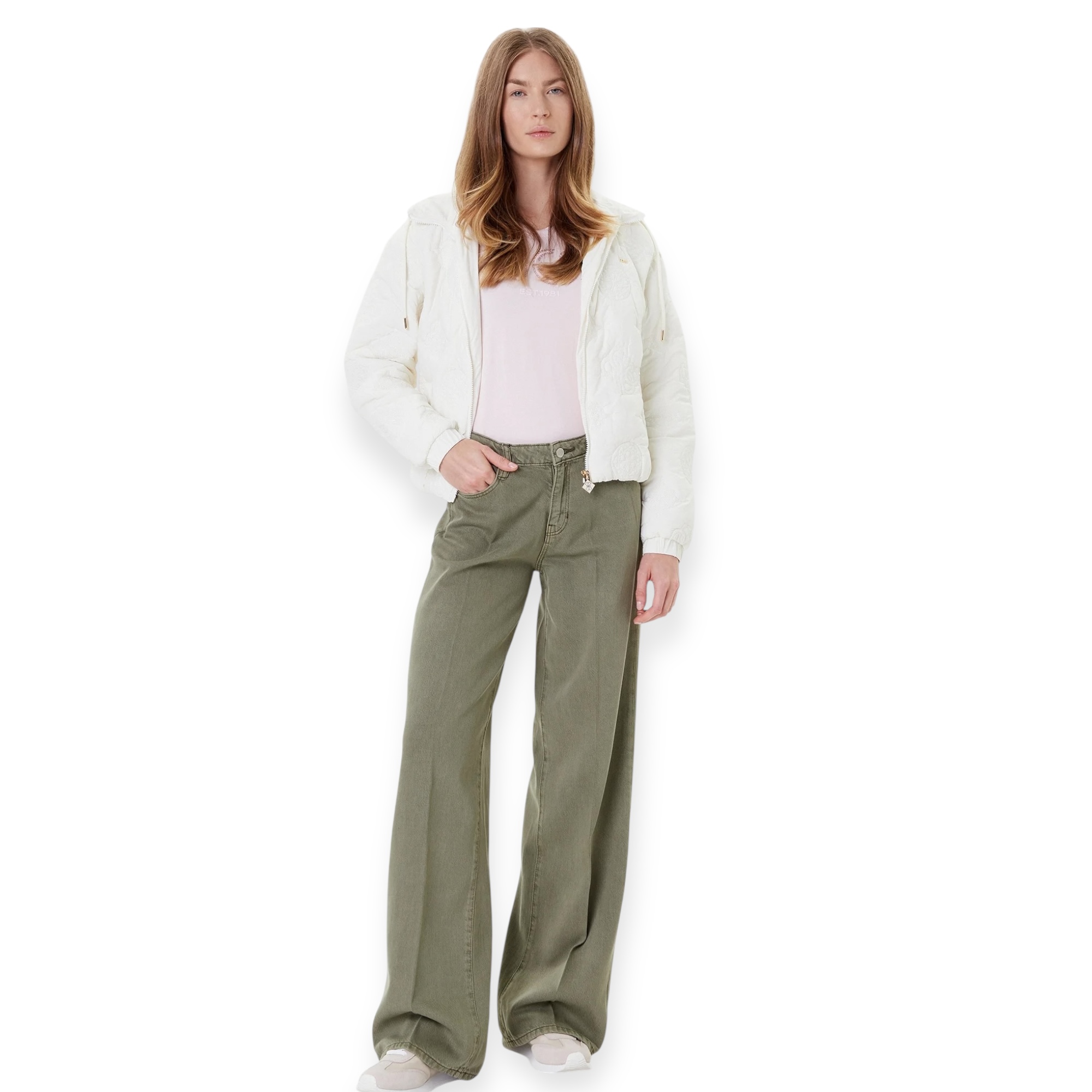 מעיל נשים קצר של guess בצבע לבן, בעיצוב קווילט עם הטבעות לוגו עדינות. כולל כובע עם שרוך, רוכסן קדמי וכיסי צד נוחים. מעניק מראה יוקרתי, נעים ומחמם לחורף.