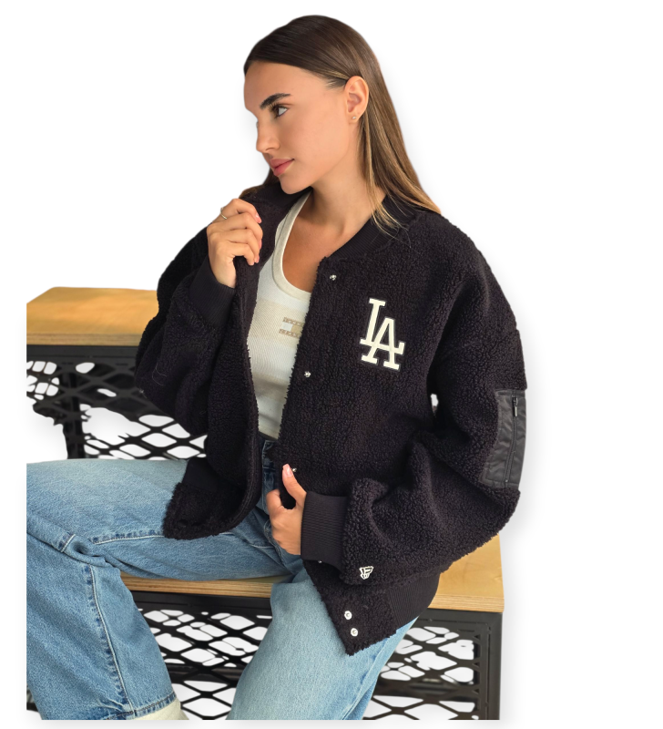 בומבר של new era x dodgers – גזרה מחממת ומרשימה עם טקסטורת שרפה רכה ולוגו LA רקום לחובבי סטייל בולט. מושלם ללוק אורבני בעונה הקרה.