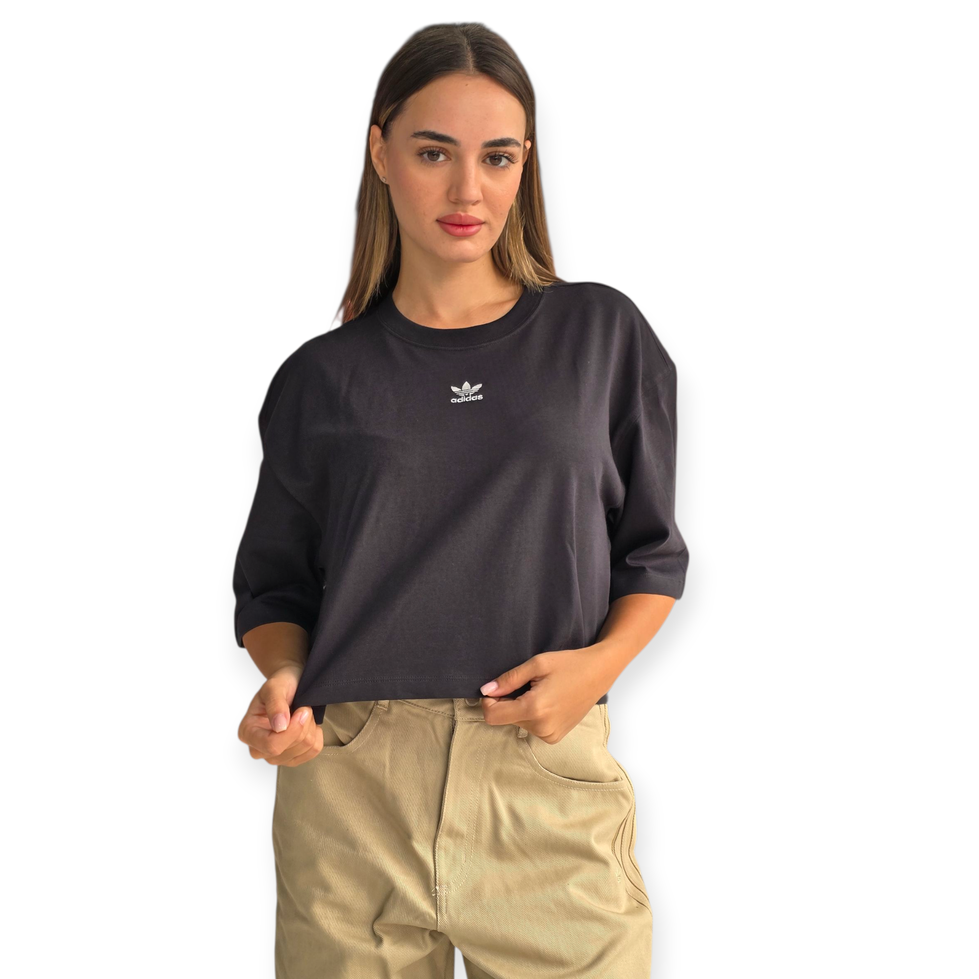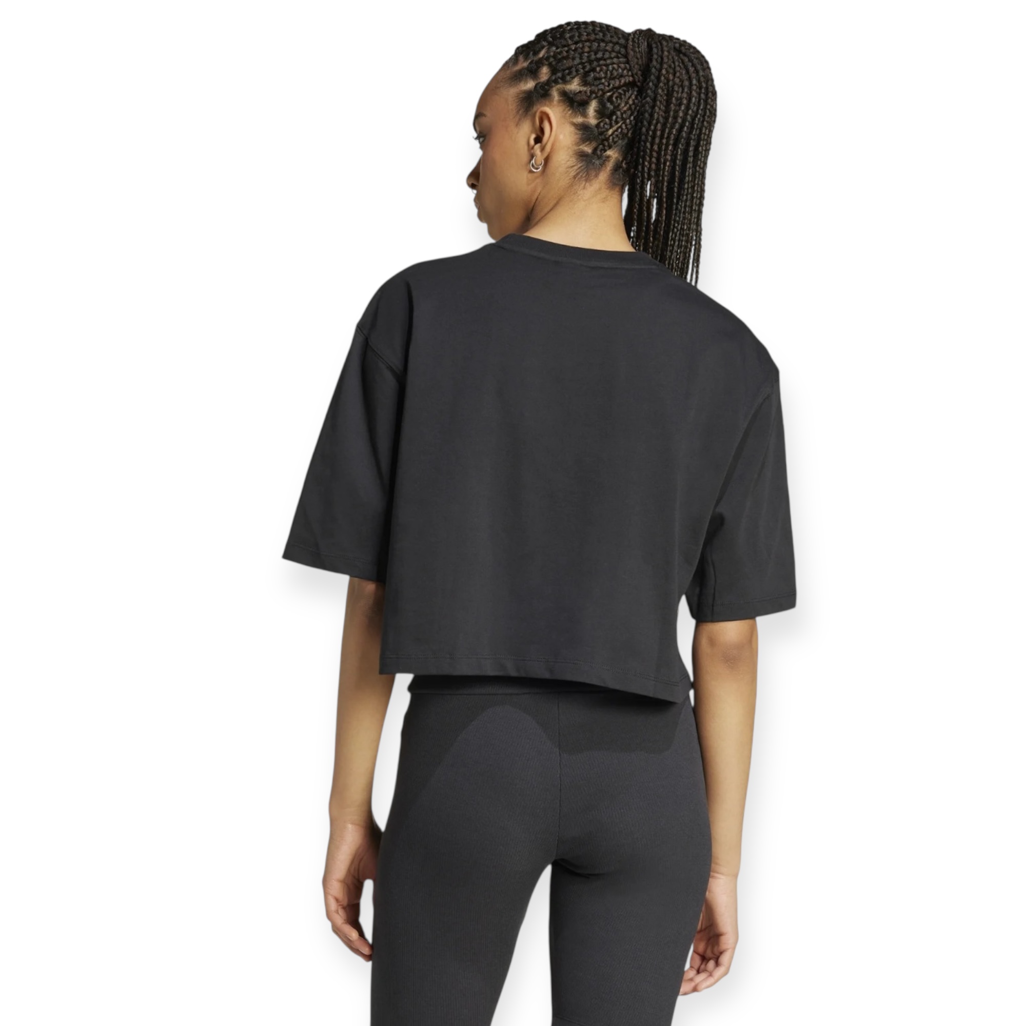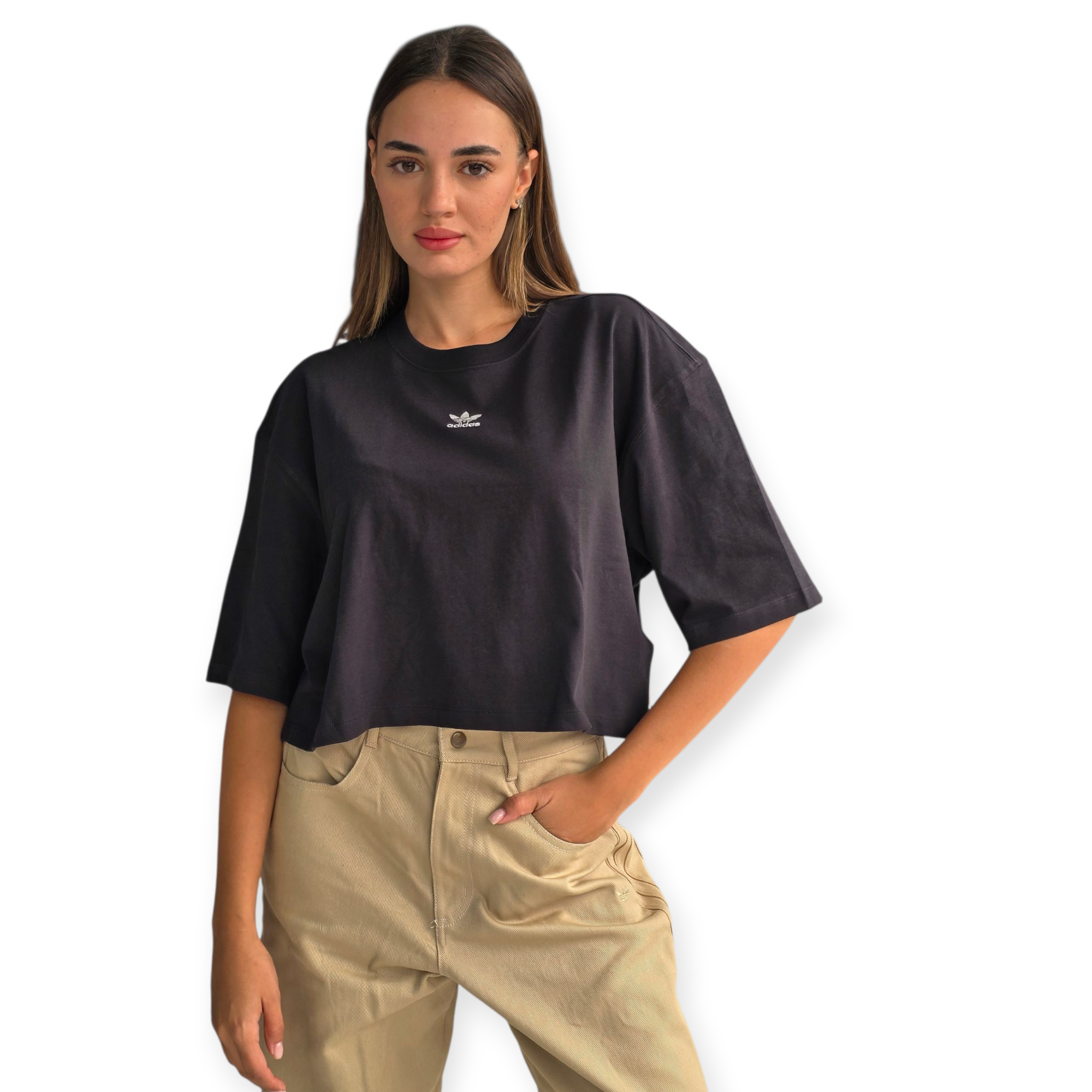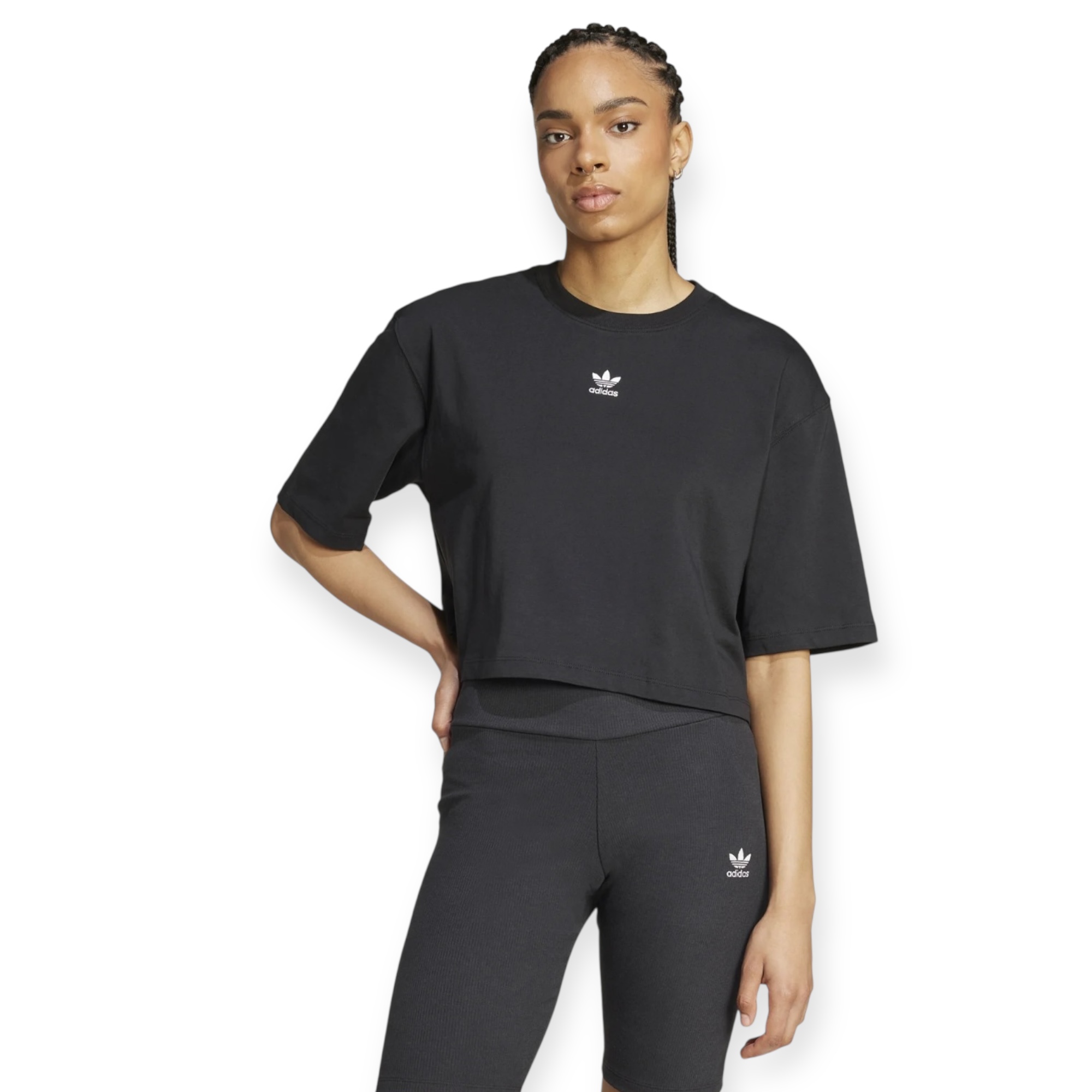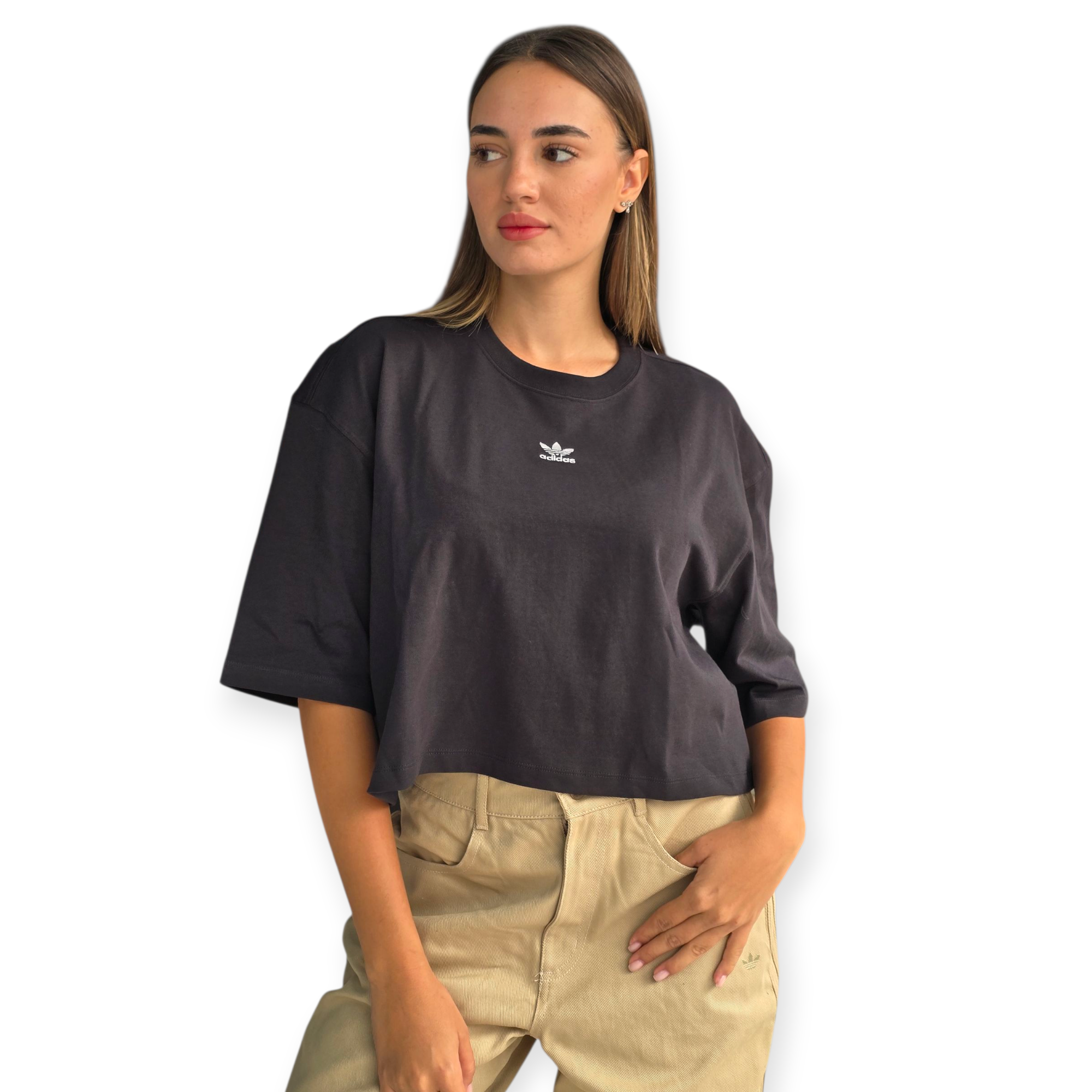 טי שירט קרופ לנשים מבית adidas עם לוגו trefoil קלאסי – גזרה משוחררת ללוק ספורטיבי ונוח.