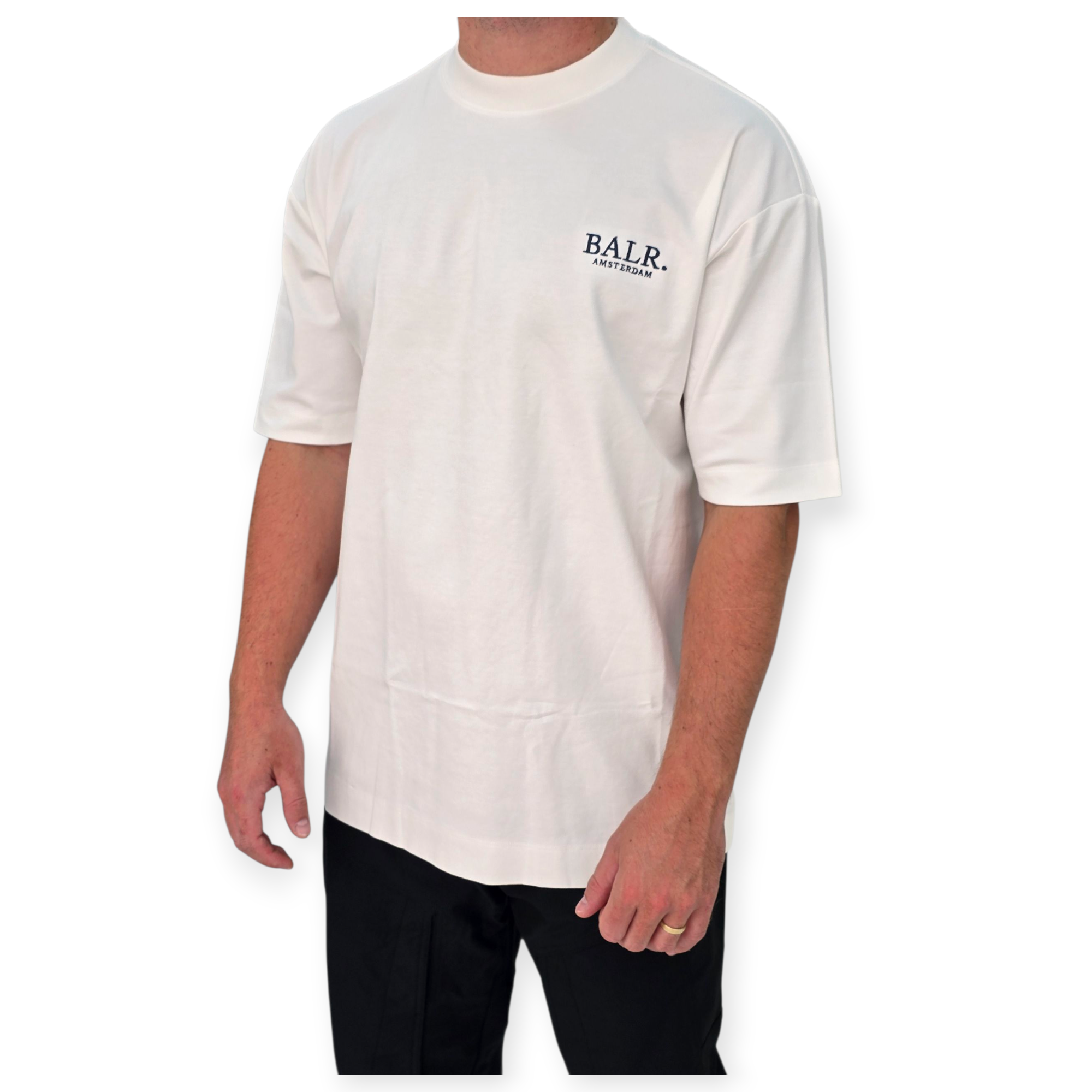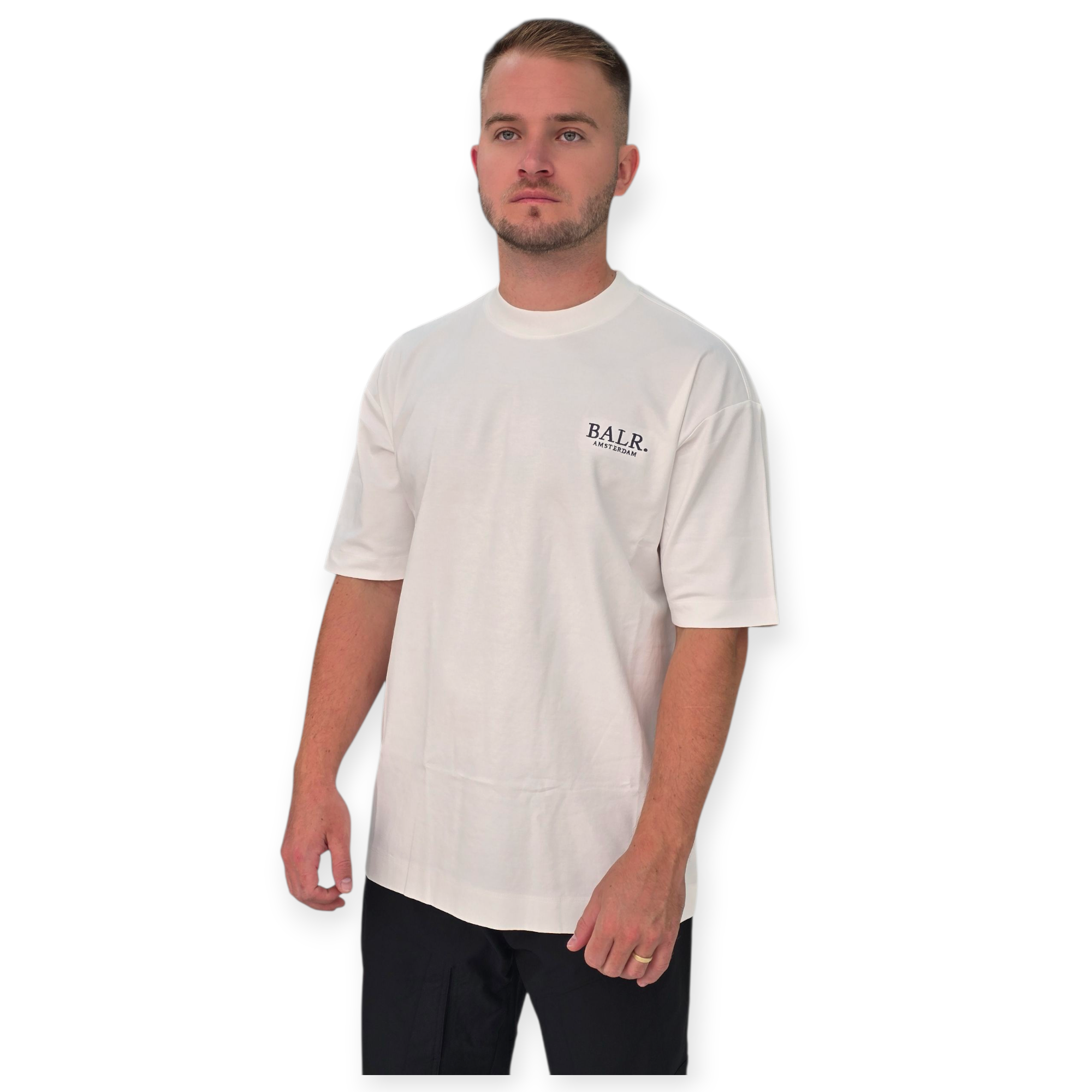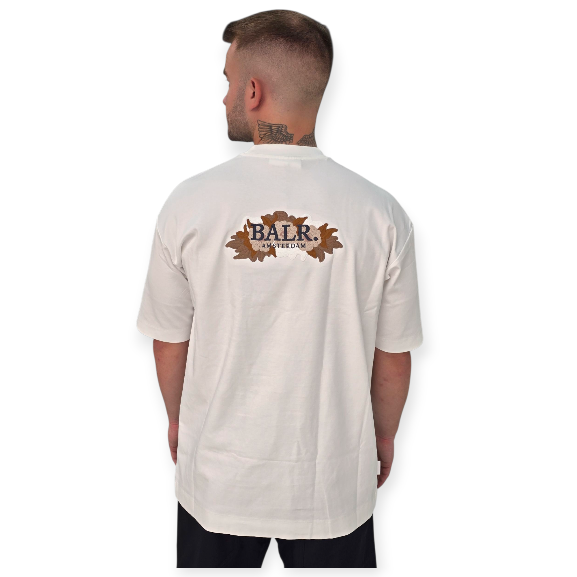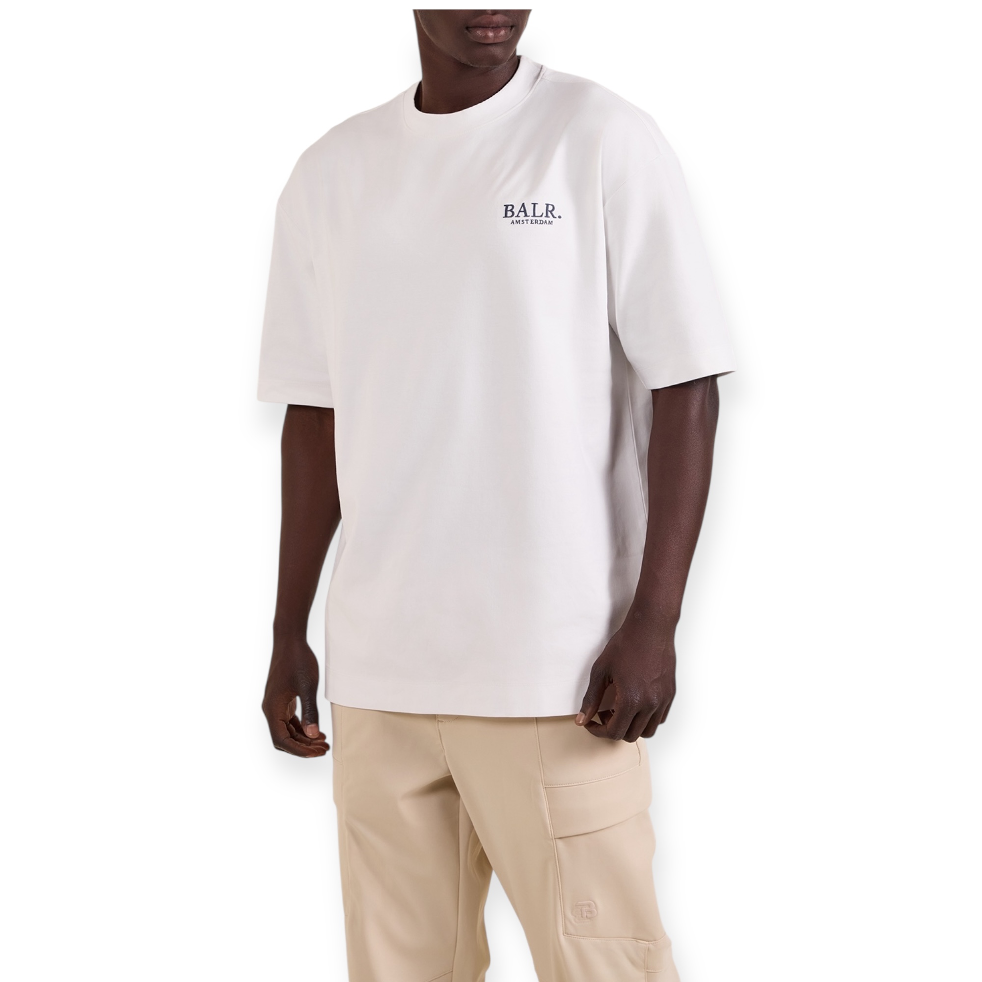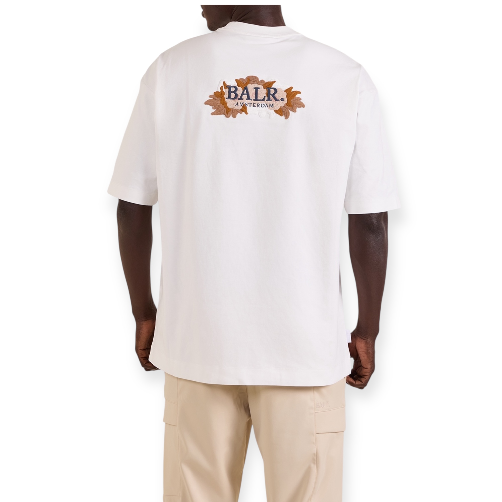 חולצת טי בגזרה משוחררת מבית Balr, עשויה תערובת כותנה בצבע שחור עם דפוס ופאצים מלפנים ואחור.
