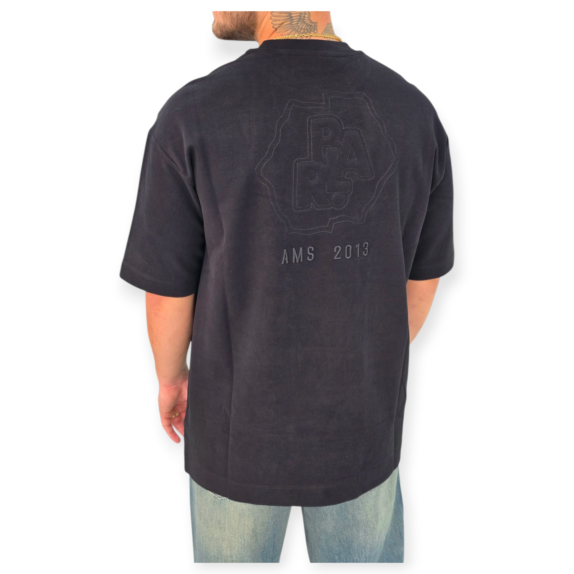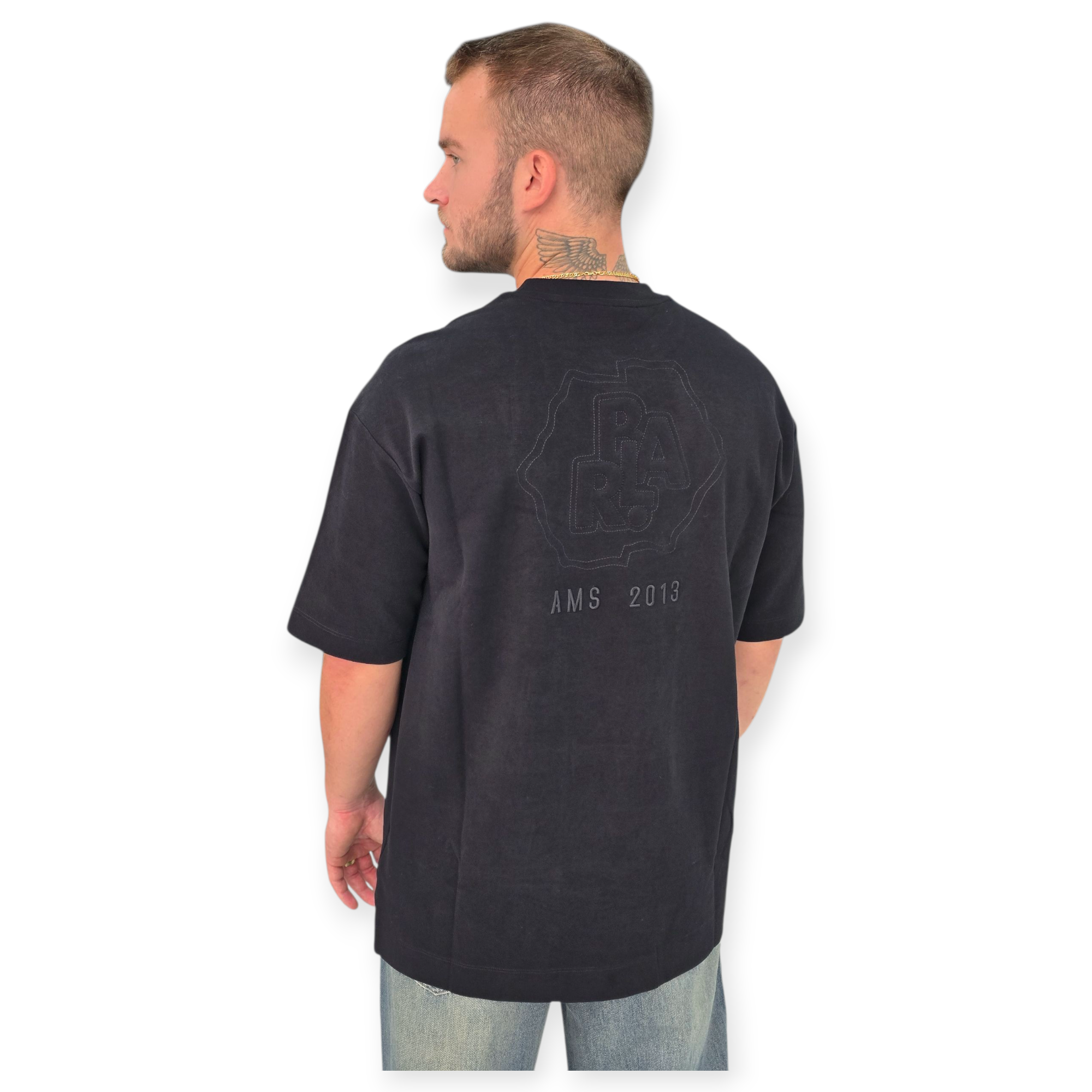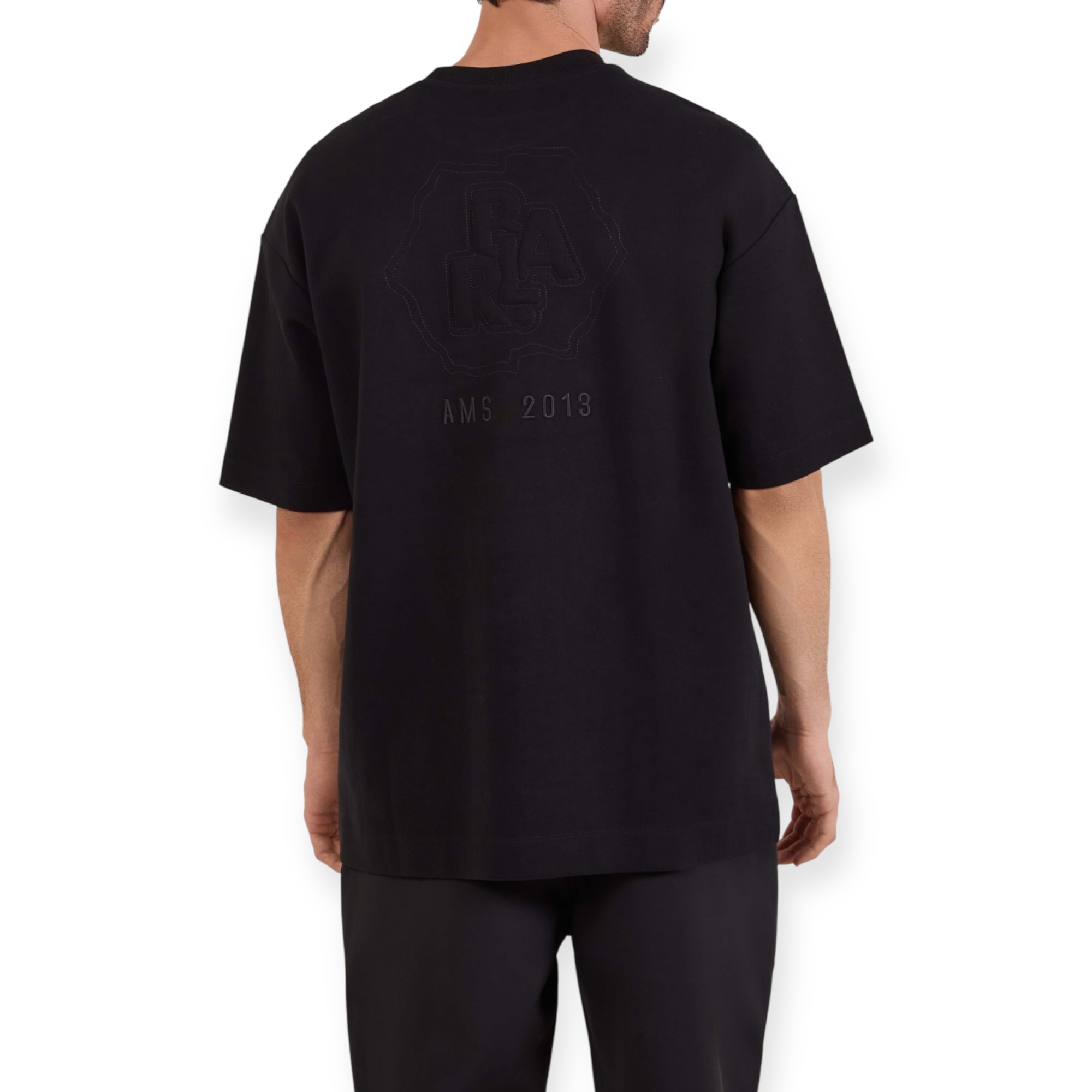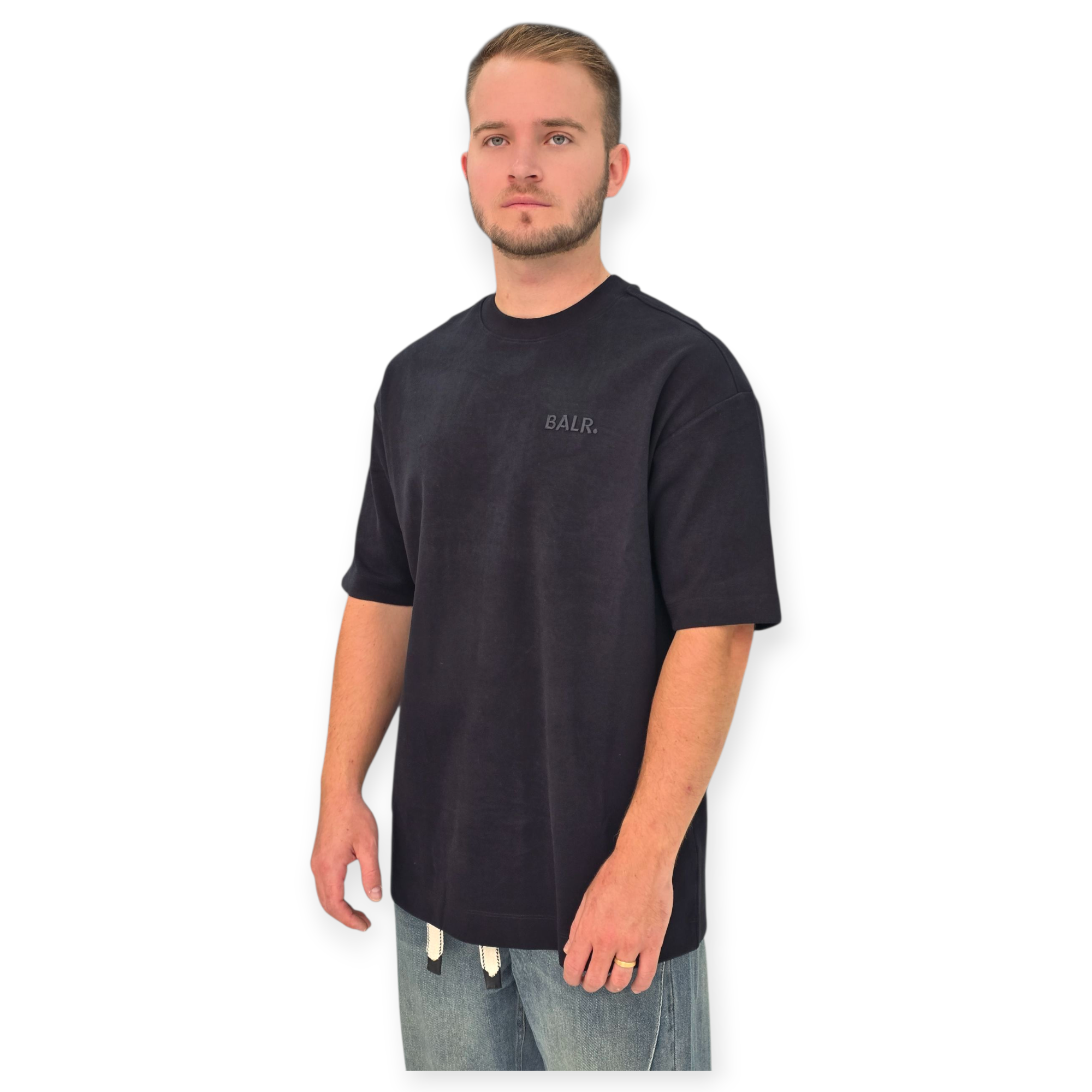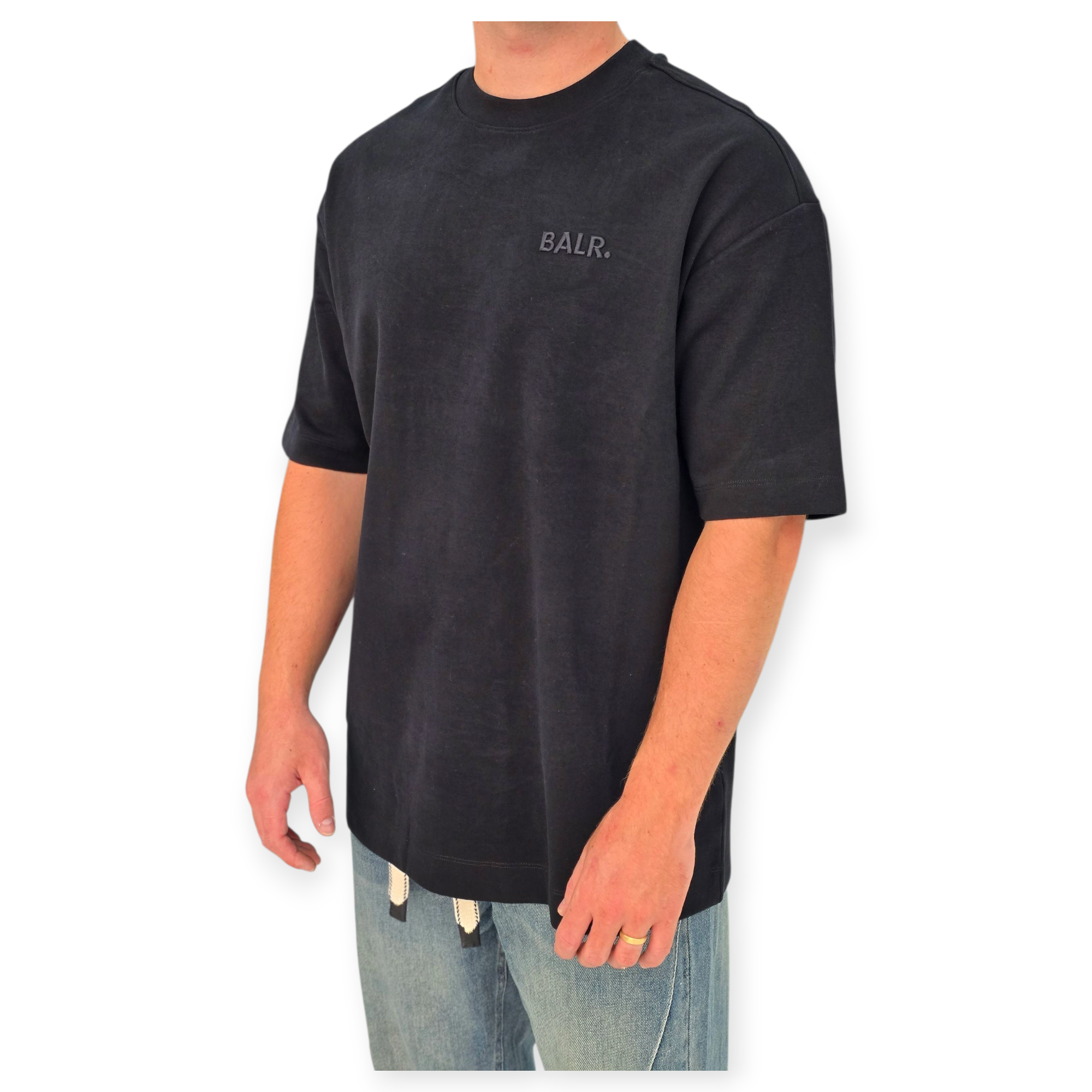 חולצת טי בגזרה משוחררת מבית Balr, עשויה תערובת כותנה בצבע בז’ עם דפוס ופאצים מלפנים ואחור.