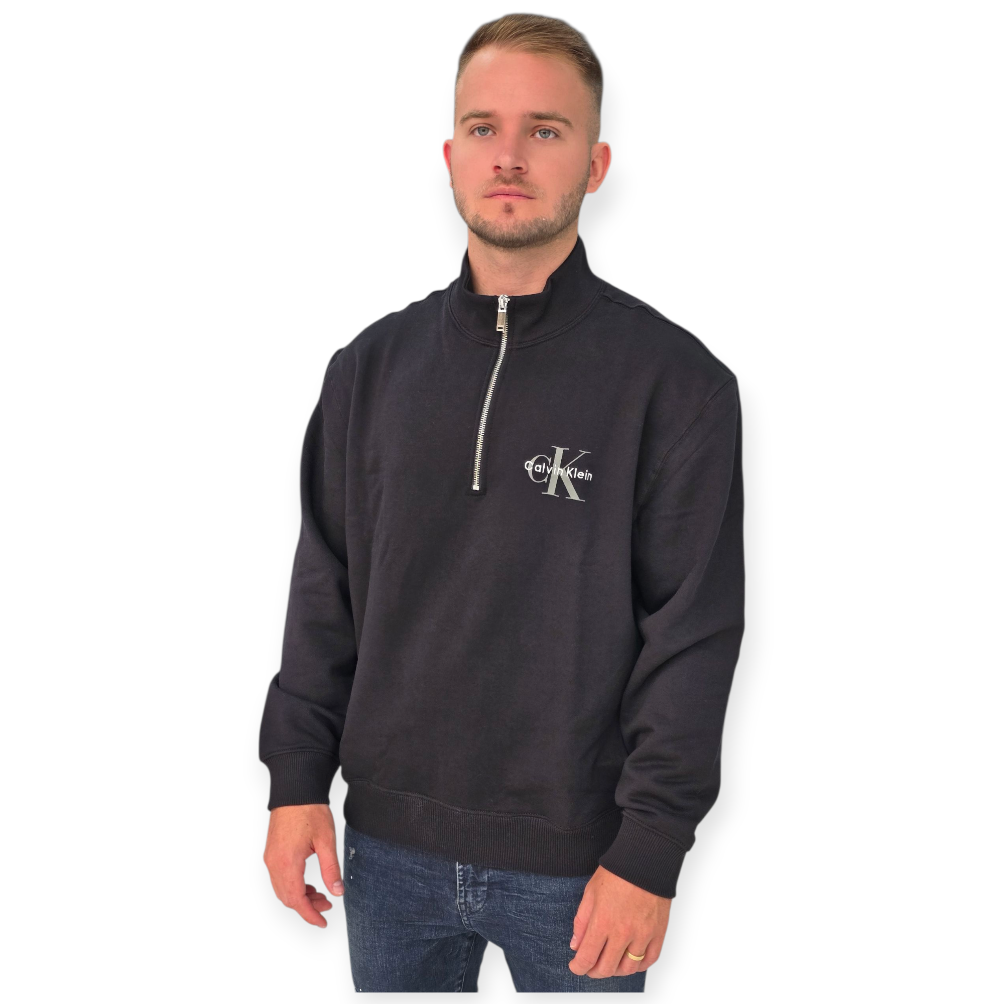 סווטשירט שחור מבית calvin klein בדגם חצי רוכסן, עם לוגו CK קטן ומדויק בחזה. עשוי מבד טרי נעים ונושם, מושלם לסטייל יומיומי נינוח שמשתלב בקלות עם כל לוק.