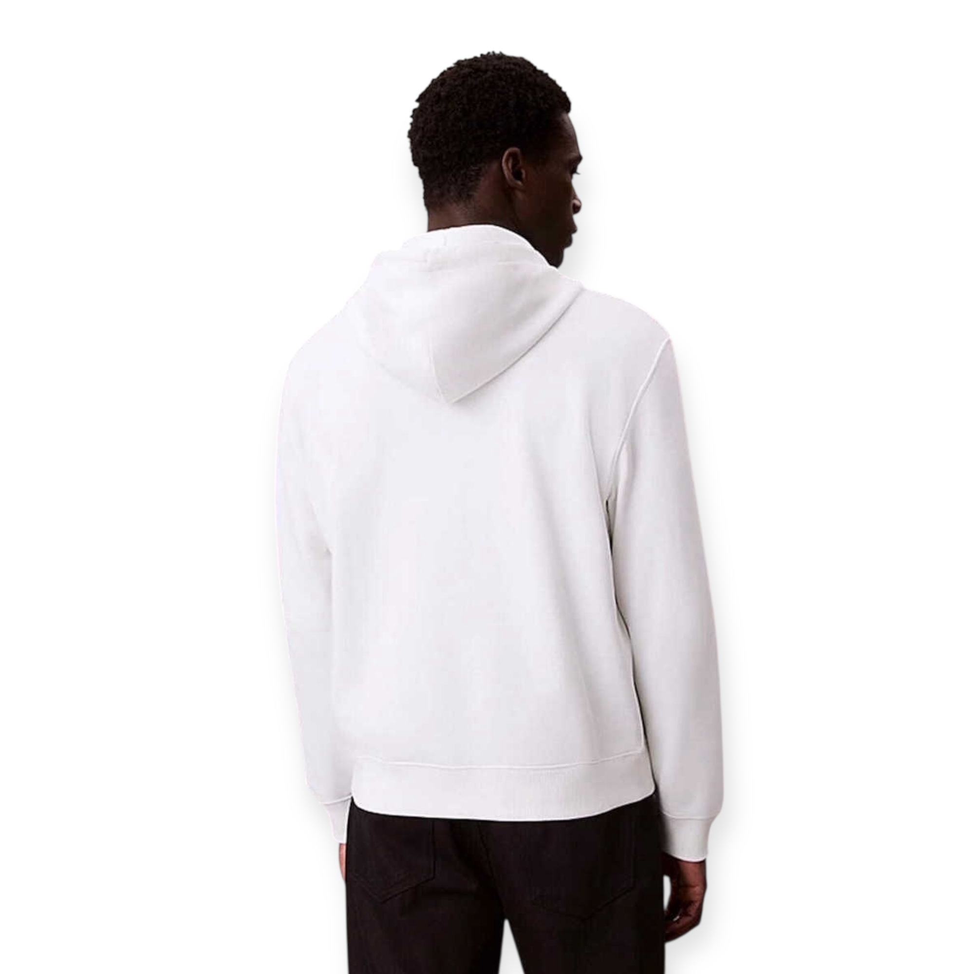 הודי לבן מבית calvin klein עם לוגו גרפי מודרני בחזית, בשילוב אדום־שחור שמוסיף נגיעה אורבנית עכשווית. עשוי כותנה נעימה עם כיס קדמי וקפוצ’ון מתכוונן – מושלם לסטייל יומיומי נקי ונוח.ק.
