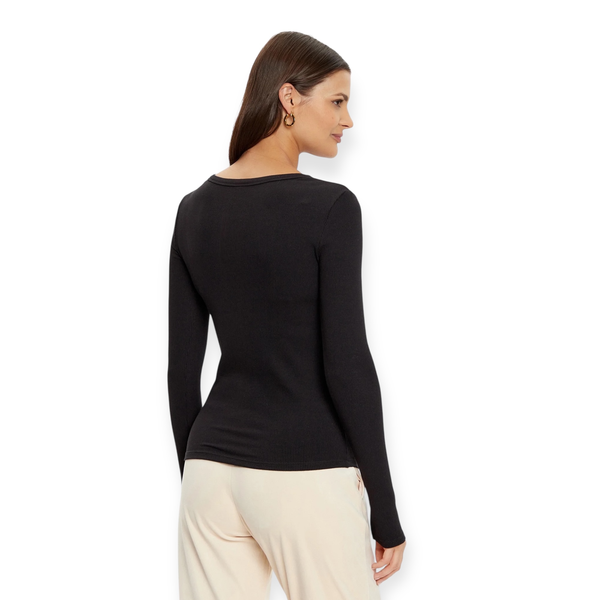 חולצת ריב ארוכה של guess בדגם colette – גזרה צמודה ומחמיאה עם מחשוף עגול ולוגו משולש אייקוני. מושלמת לשילוב יומיומי עם ג’ינס או מכנסיים אלגנטיים.