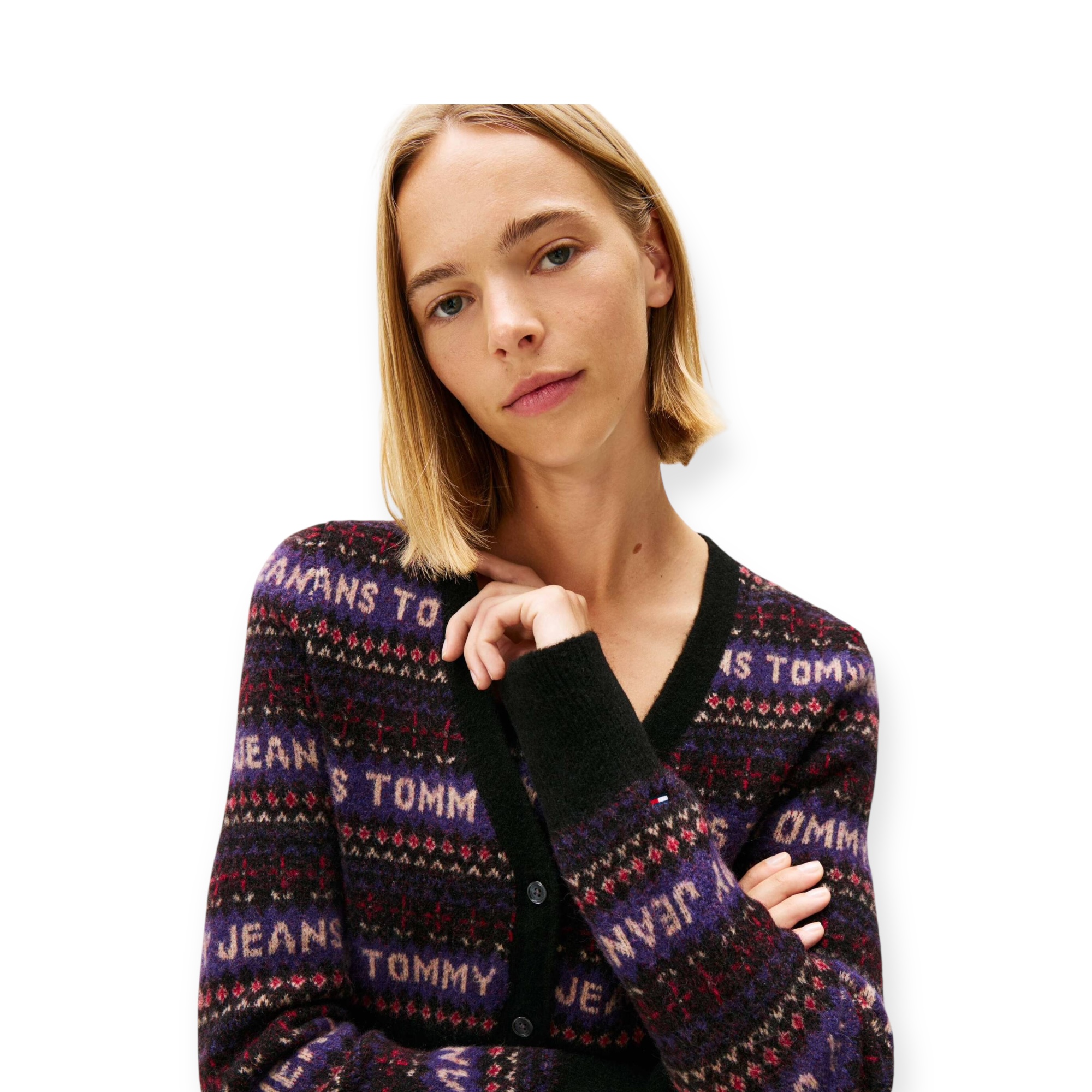 קרדיגן tommy jeans לנשים – סטייל רטרו עדכני עם דוגמת לוגו צבעונית לכל האורך. עשוי סריג רך ונעים בגזרה קצרה ומחמיאה, מושלם לשילוב מעל גופייה תואמת או ג’ינס גבוה למראה צעיר ובולט.