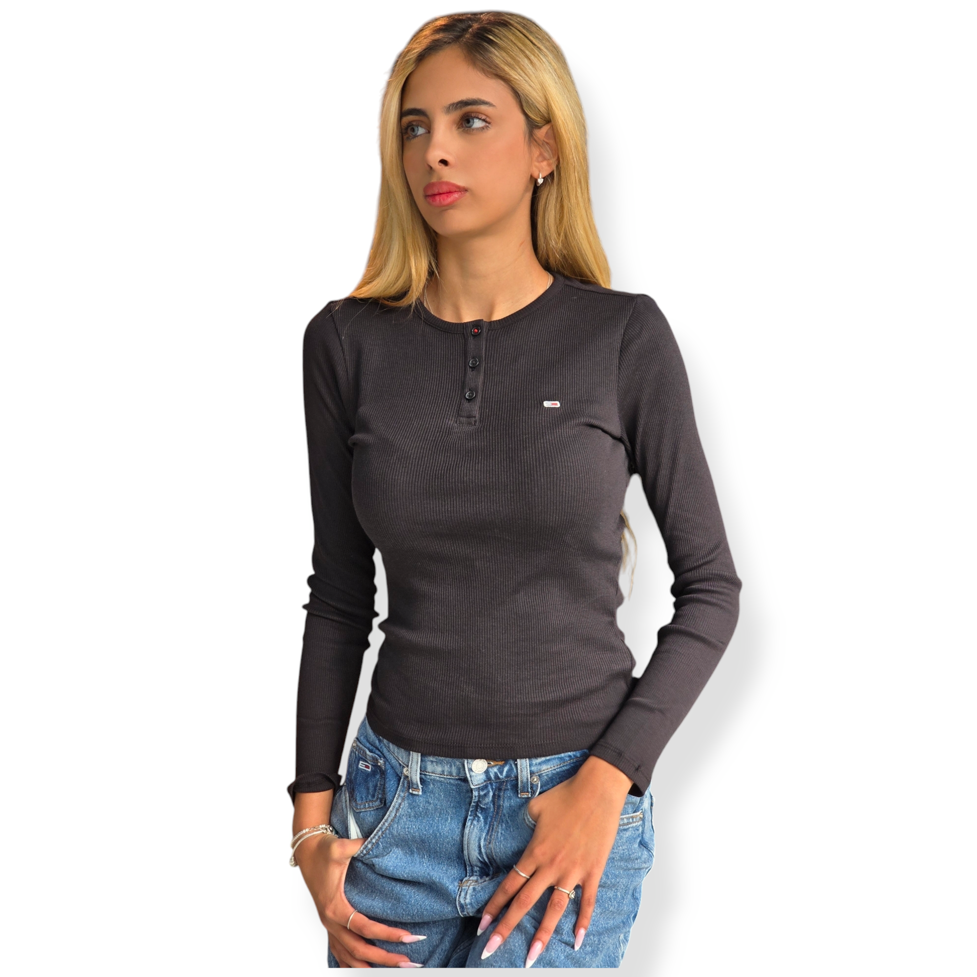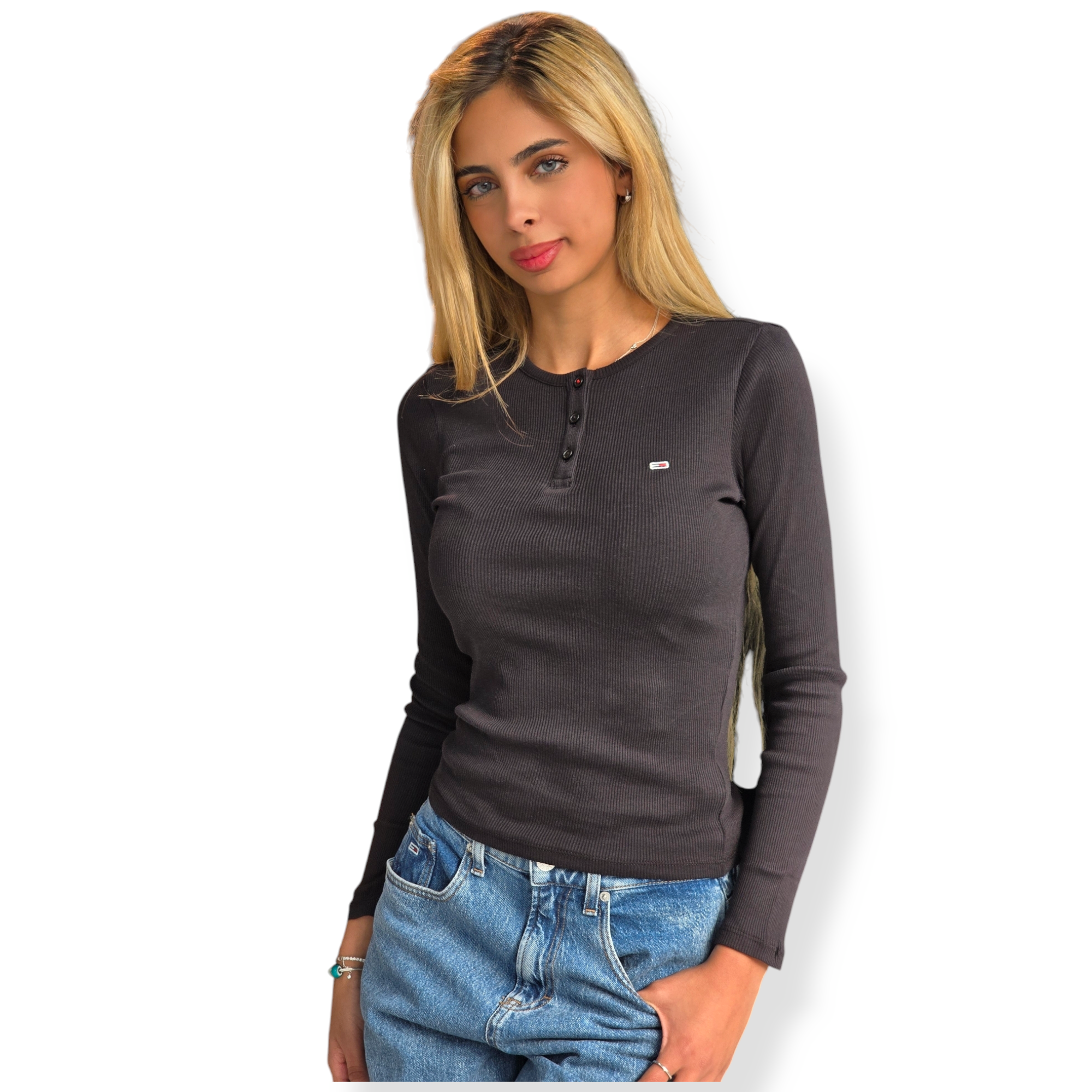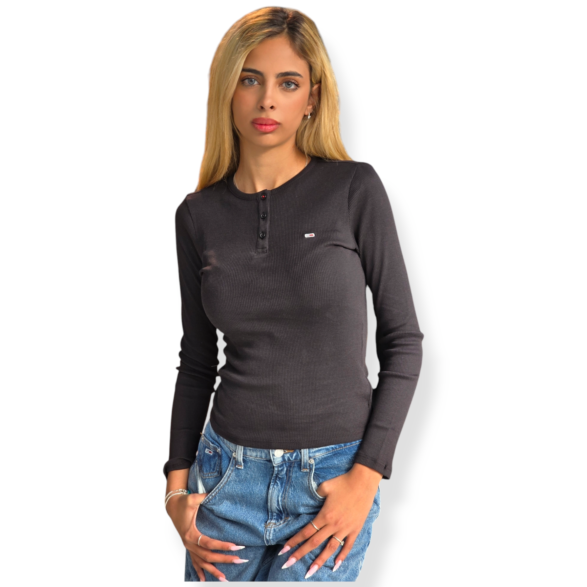 חולצה של tommy hilfiger בד ריב צבע שחור