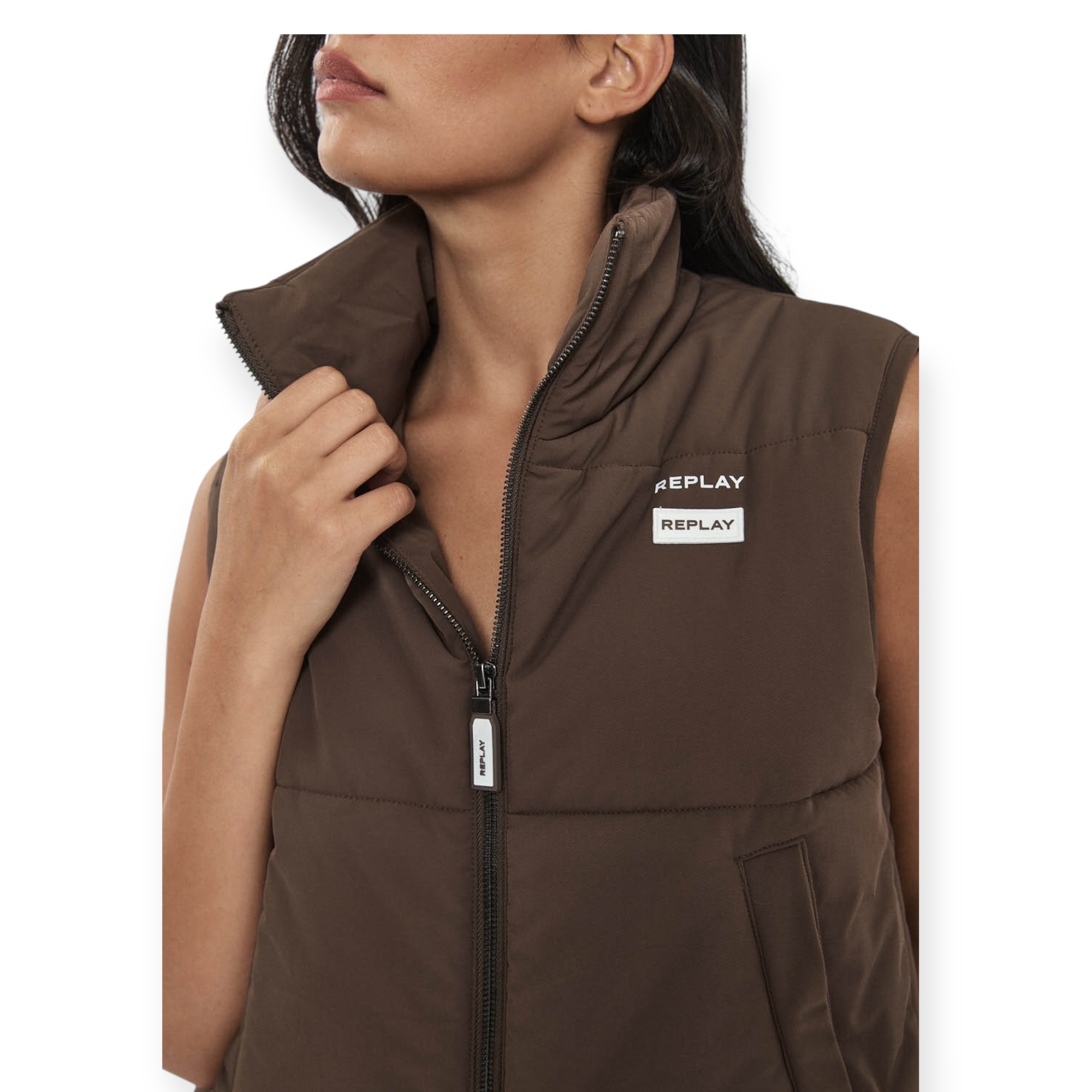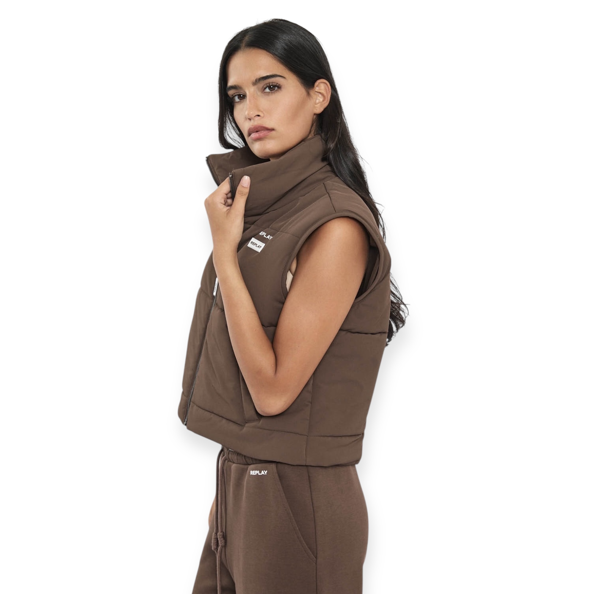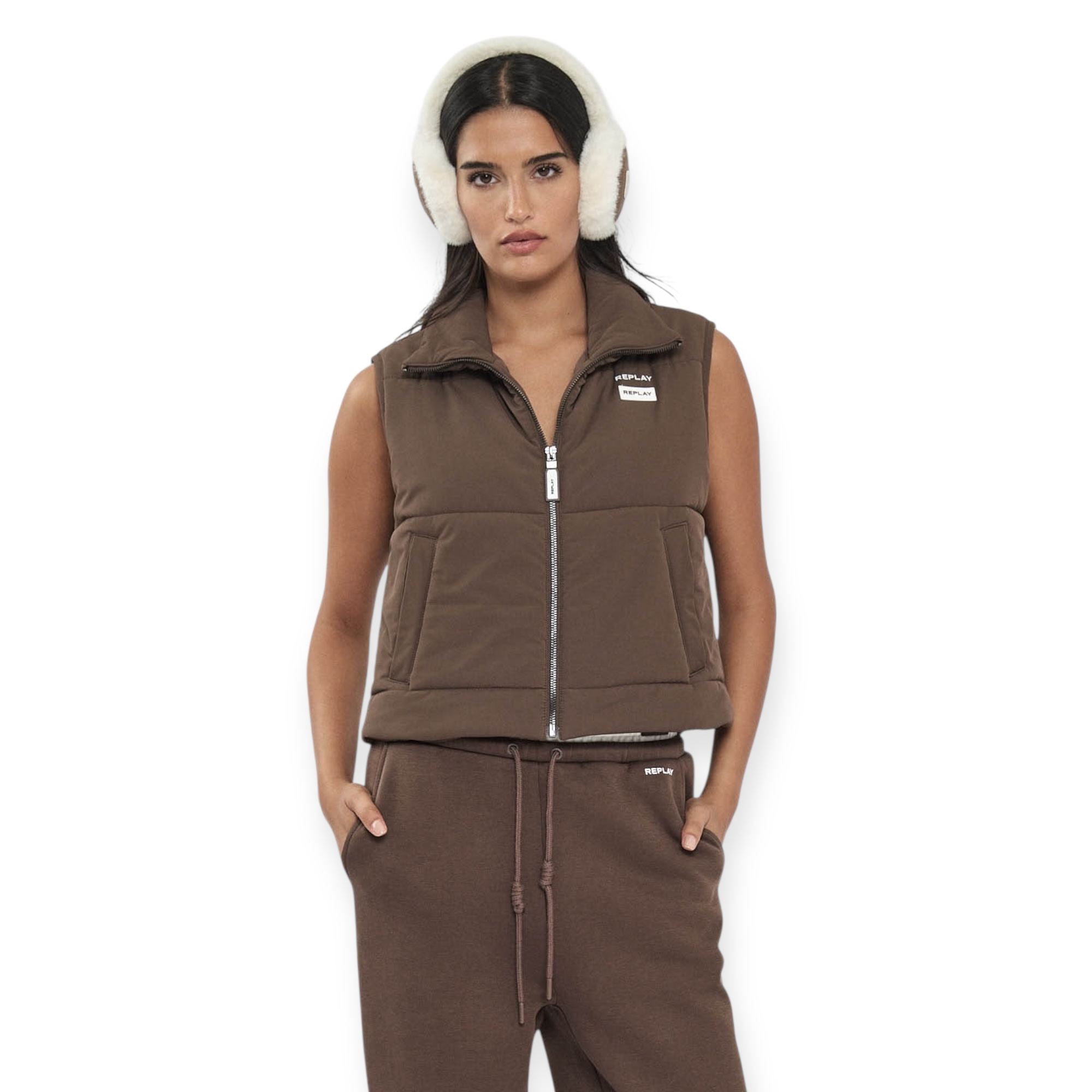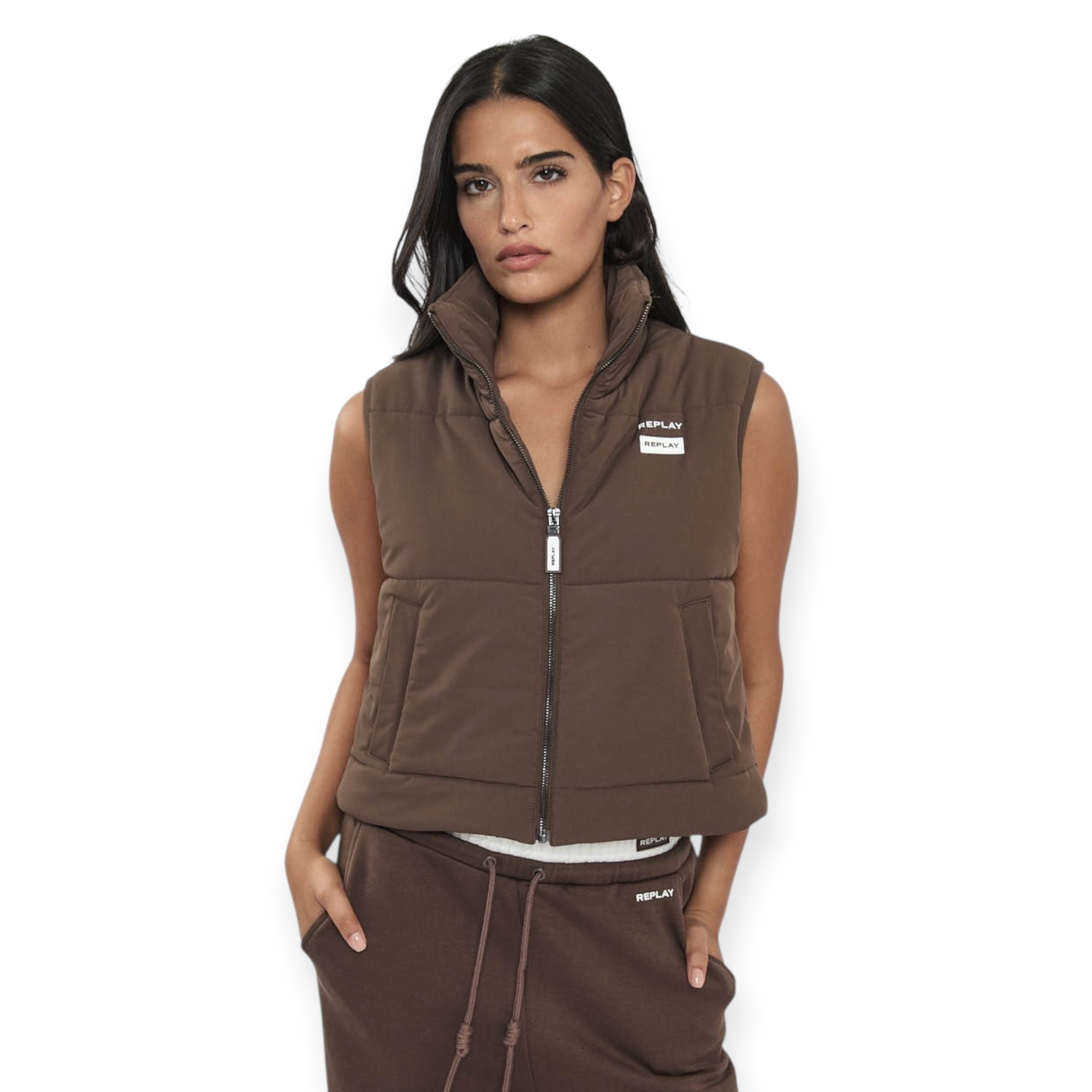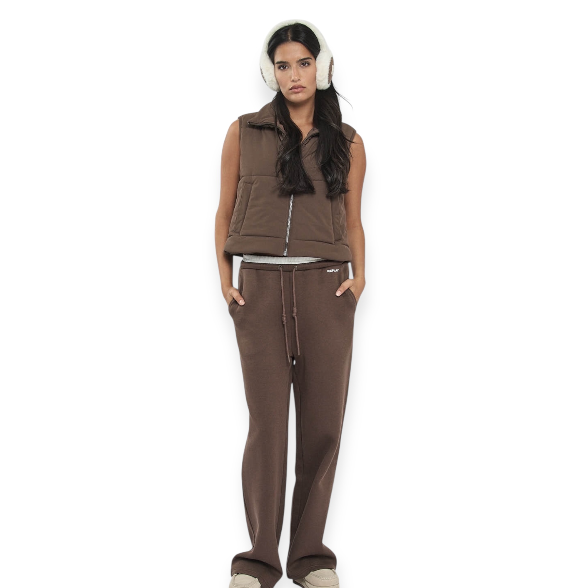 חליפת replay padded set לנשים – סט חורפי מושלם עם מראה יוקרתי ונוח. כולל וסט מרופד עם צווארון גבוה ולוגו replay בחזה, ומכנסיים תואמים בגזרה רחבה עם מותן אלסטית ודיטיילים עדינים של המותג. מגיעה בגווני חום או שחור, לנוחות מושלמת ולוק אורבני מחוספס אך נשי.