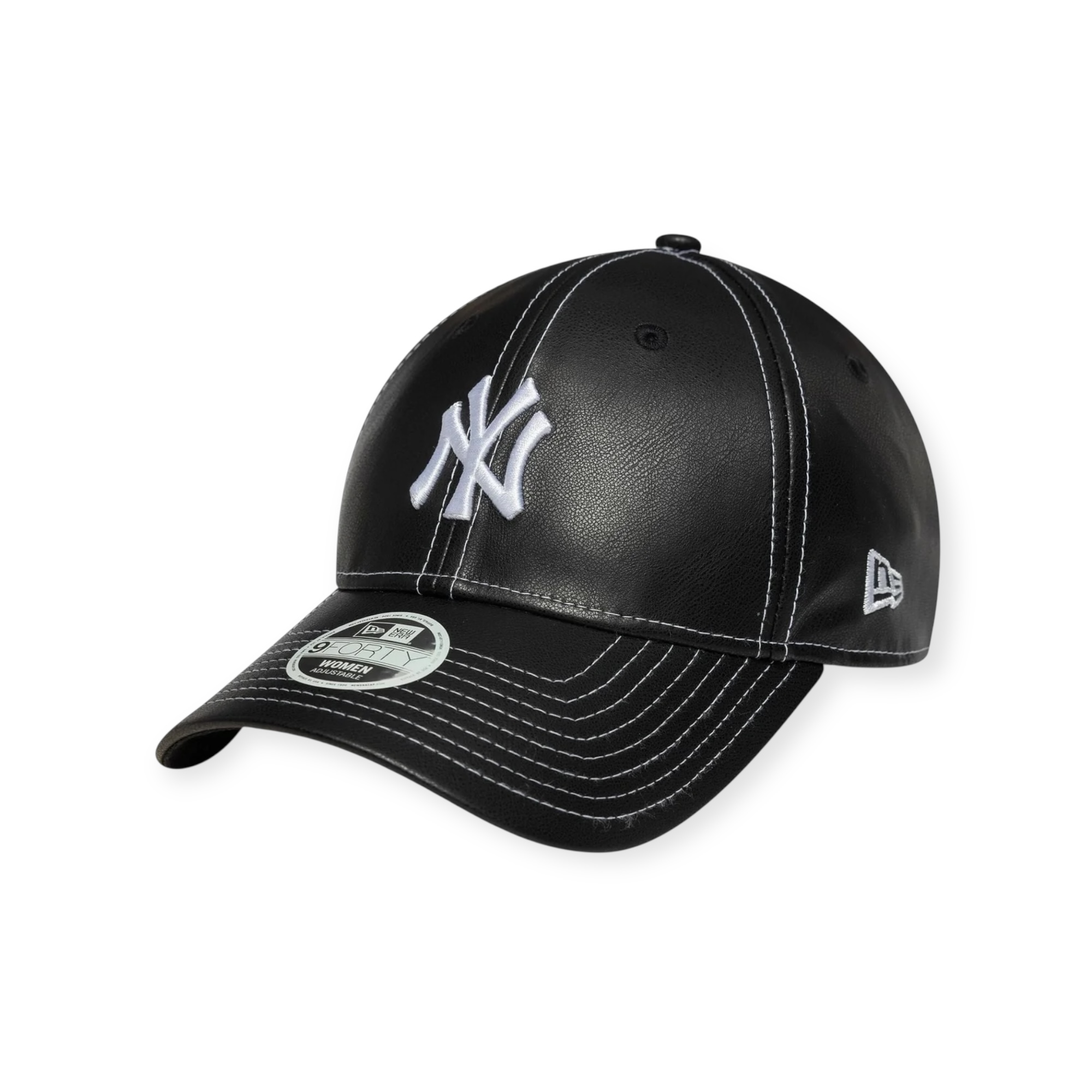 כובע נשים new era מדגם 9forty עם גימור דמוי עור ולוגו ny רקום בחזית. עיצוב ייחודי שמשלב סטייל עם נוחות יומיומית.