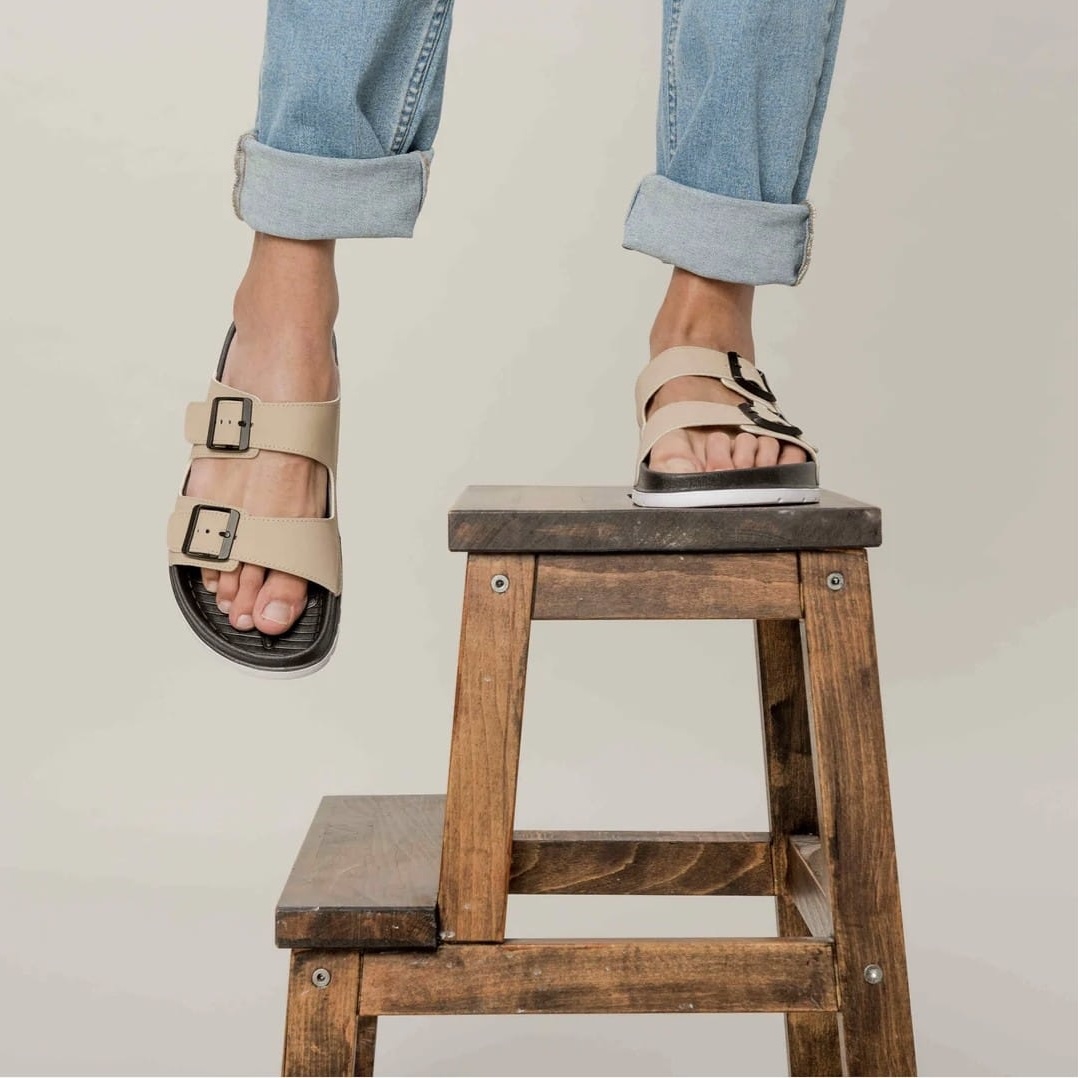 כפכפים , עשויים מחומרים ממוחזרים, נוחים מעוצבים, עמידים ומדליקים. . מיוצרים ומעוצבים עם תשוקה לטיולים, חופש וטבע. רצועות דמוי עור – Nubuck PU טבעוני עם בטנה רכה, אבזמי אלומיניום מתכוננים בגימור סאטן וסוליה עשויה EVA ממוחזר עם בלימת זעזועים – SkyLite