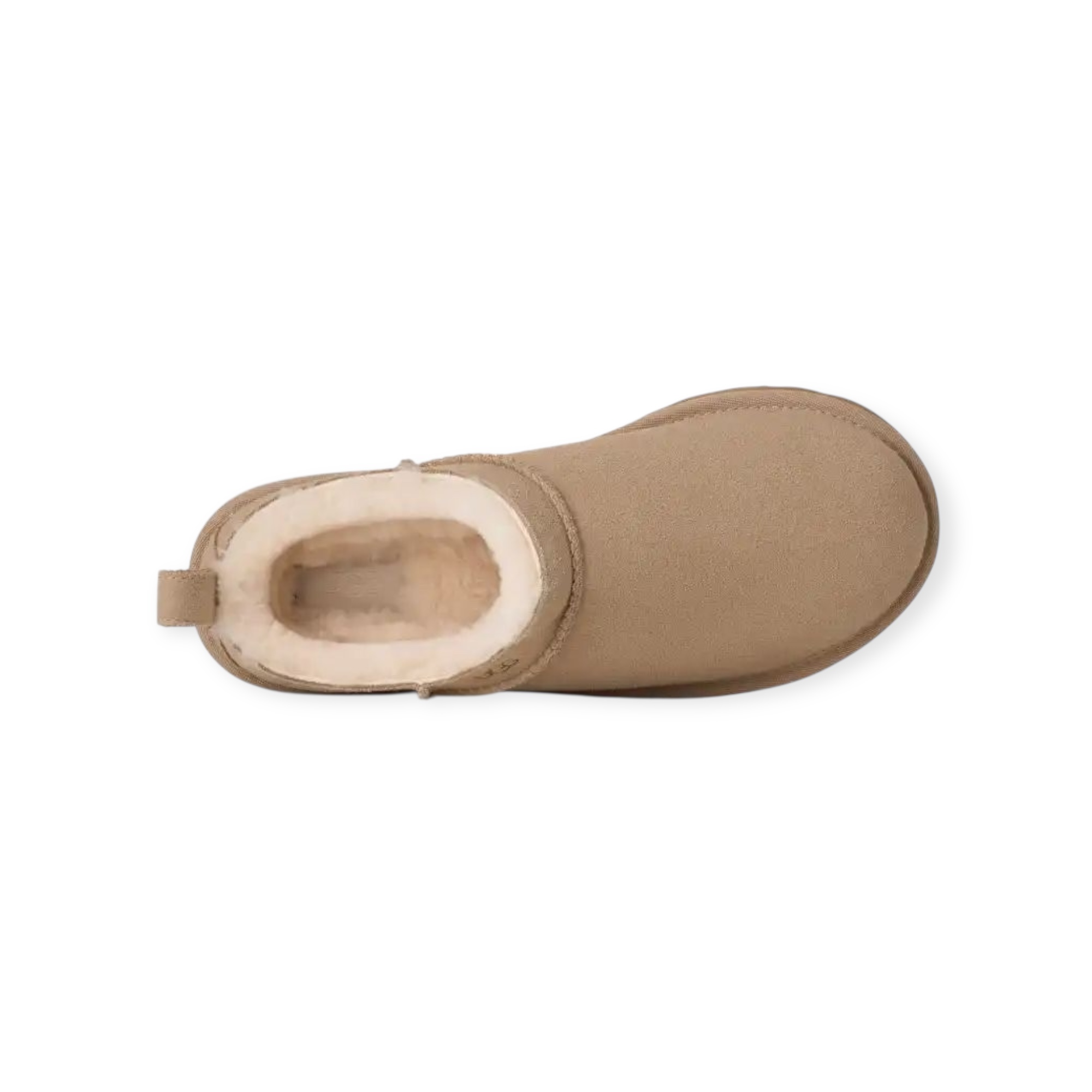 ה-Classic Micro שלנו מדמיין מחדש את מגף ה-Classic האהוב עלינו עם עיצוב חדש ונמוך (ונוחות גבוהה). יש לו חלק עליון מזמש אמיתי מרופד בעור כבש רך במיוחד המווסת את הטמפרטורה באופן טבעי, כך שתוכלו ללבוש גרביים – או לא. סוליית החוץ הקלה מקנה סוכר EVA מספקת תמיכה ללא מאמץ ומוסיפה את תחושת הנעלי בית הנוחה לכל יציאה מהבית.