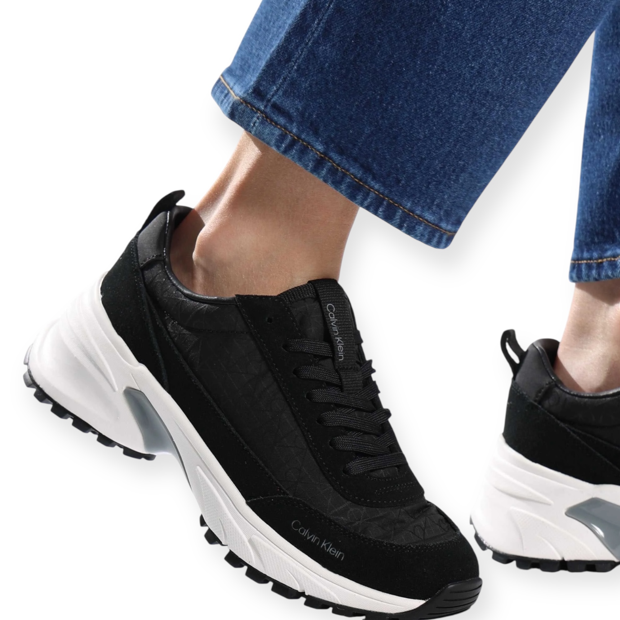סניקרס נשים קלילות של calvin klein – גוף עשוי שילוב של ניילון וטקסטיל עם קישוטי זמש עדינים, מרקם משובח ונראות מודרנית נוחות מובטחת עם ריפוד פנימי בעובי מאוזן לבטנה נושמת ושכבת סוליה גמישה וסולידית