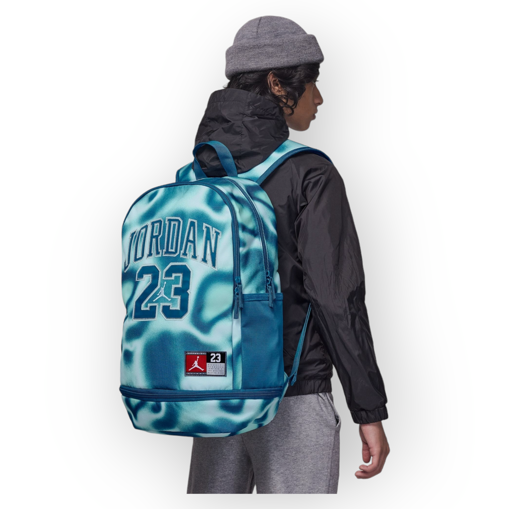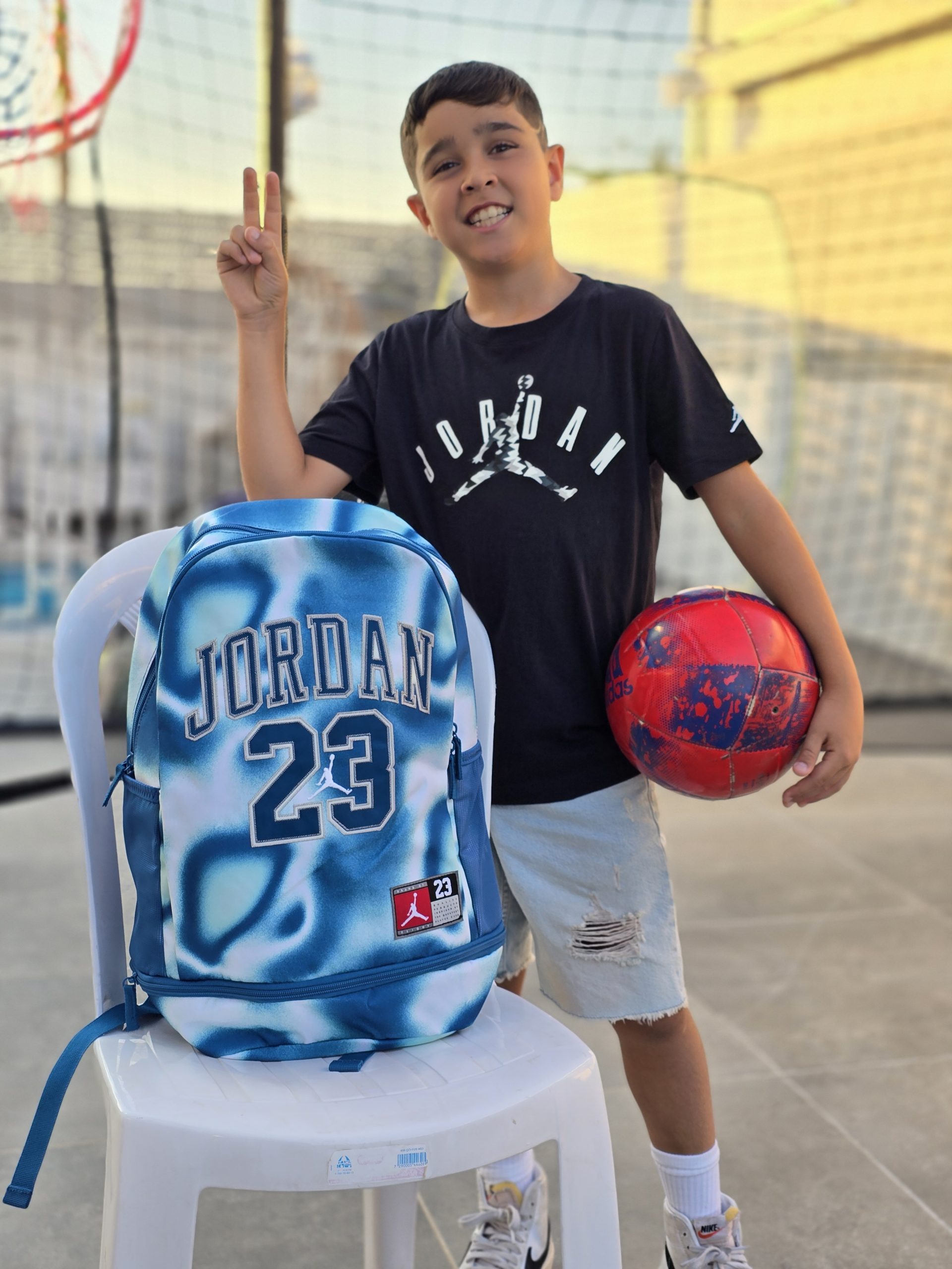 תיק גב jordan jersey שלושה תאים- גדול, קטן ותחתון, לוגו המותג, רצועות מתכווננות, ריפוד בגב. עם 2 תאים לבקבוק שתייה