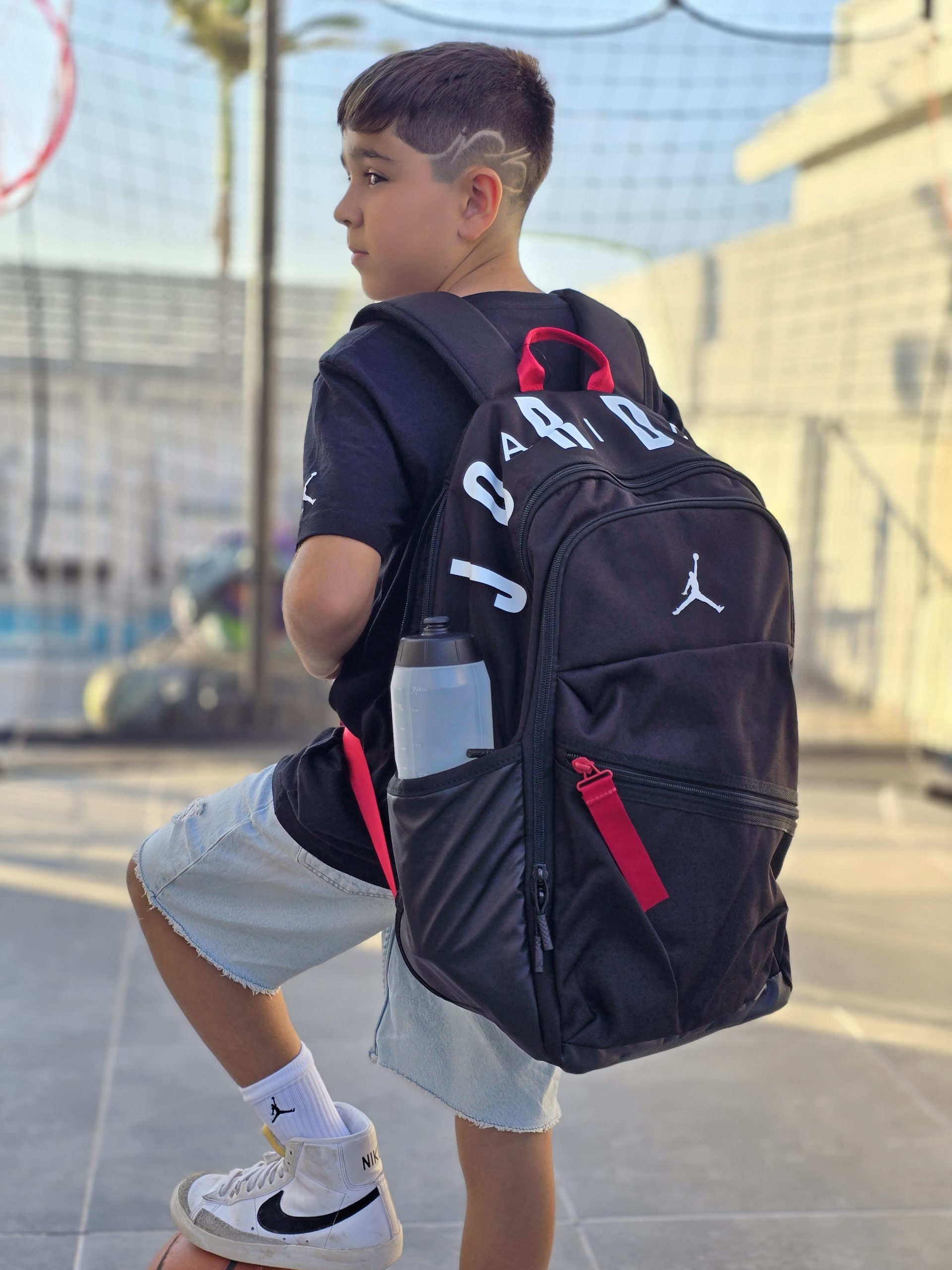 תיק גב jordan jersey שלושה תאים- גדול, קטן ותחתון, לוגו המותג, רצועות מתכווננות, ריפוד בגב. עם 2 תאים לבקבוק שתייה