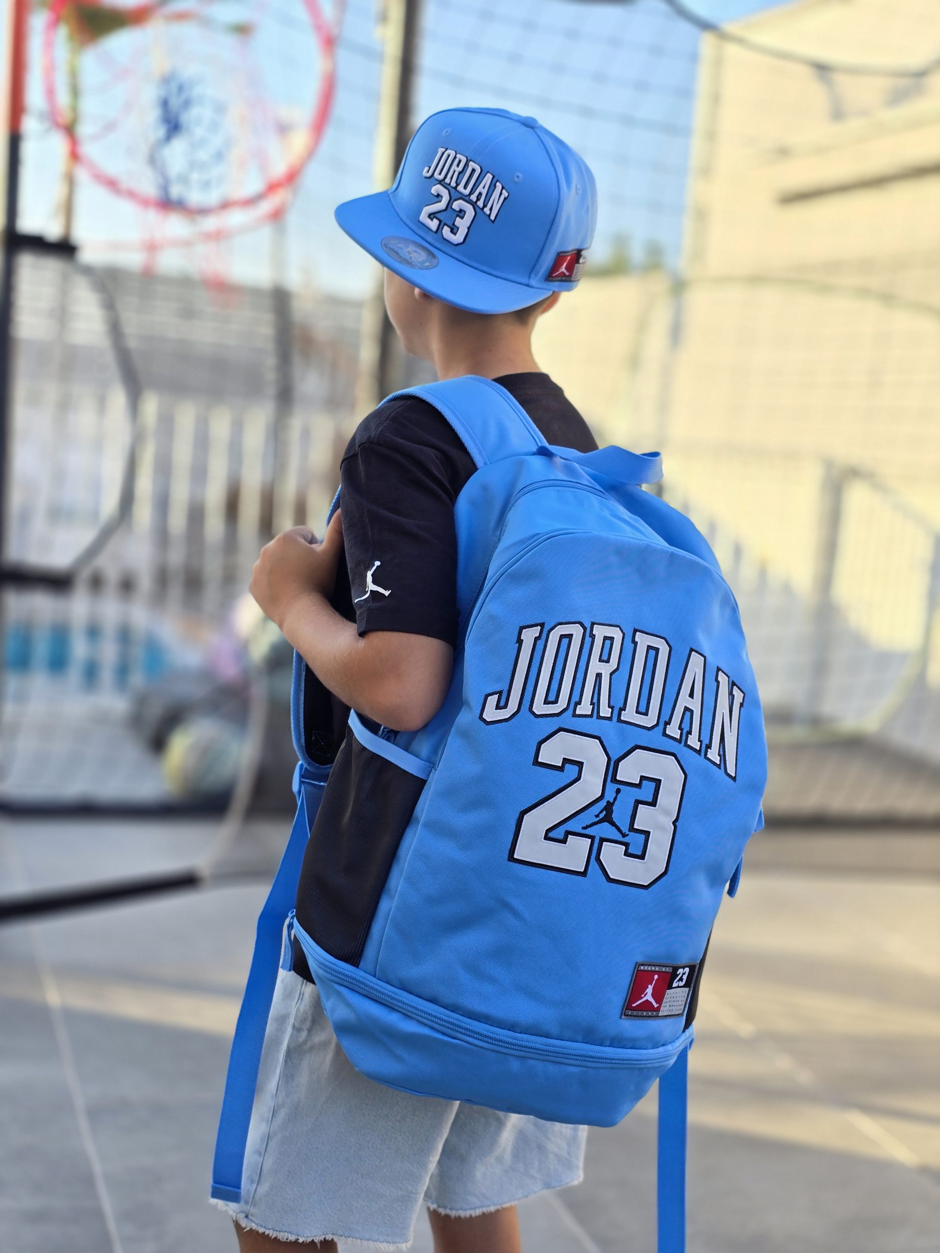 תיק גב jordan jersey שלושה תאים- גדול, קטן ותחתון, לוגו המותג, רצועות מתכווננות, ריפוד בגב.