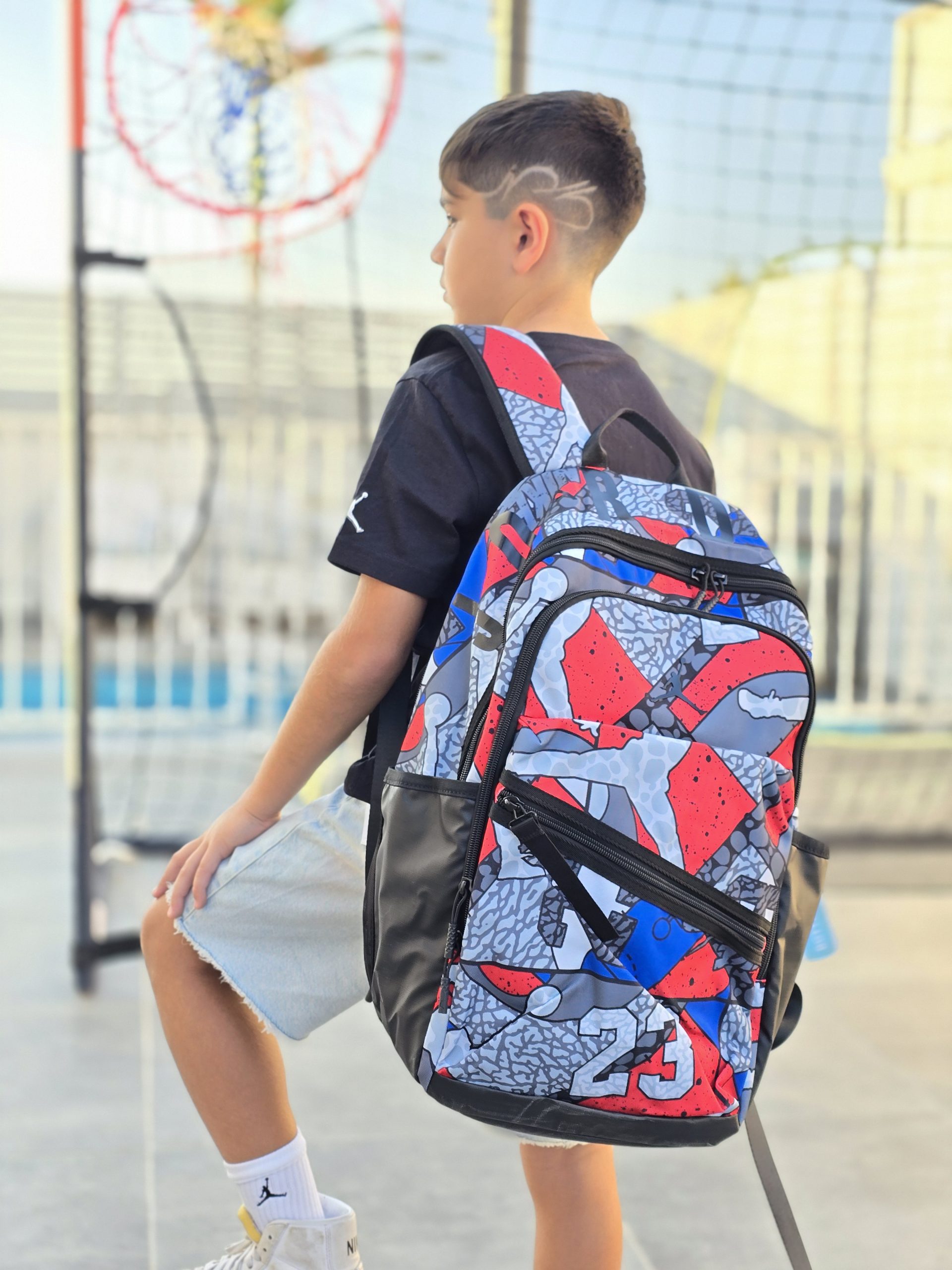תיק גב jordan jersey שלושה תאים- גדול, קטן ותחתון, לוגו המותג, רצועות מתכווננות, ריפוד בגב. עם 2 תאים לבקבוק שתייה