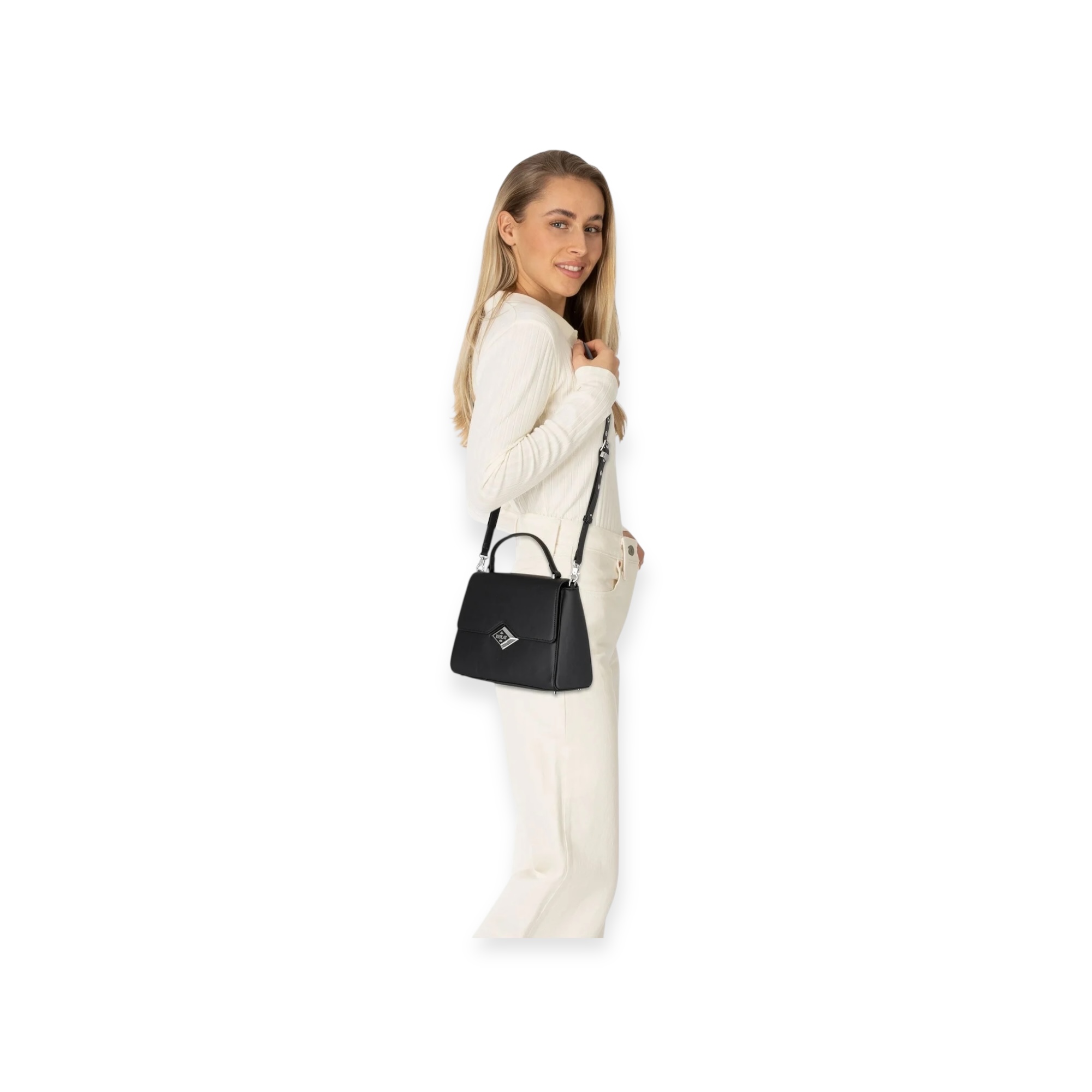 תיק צד קומפקטי עם רצועה מתכווננת ולוגו מובלט ממתכת. עיצוב אלגנטי בגימור חלק – מושלם לסטייל יומיומי בלי להתאמץ.