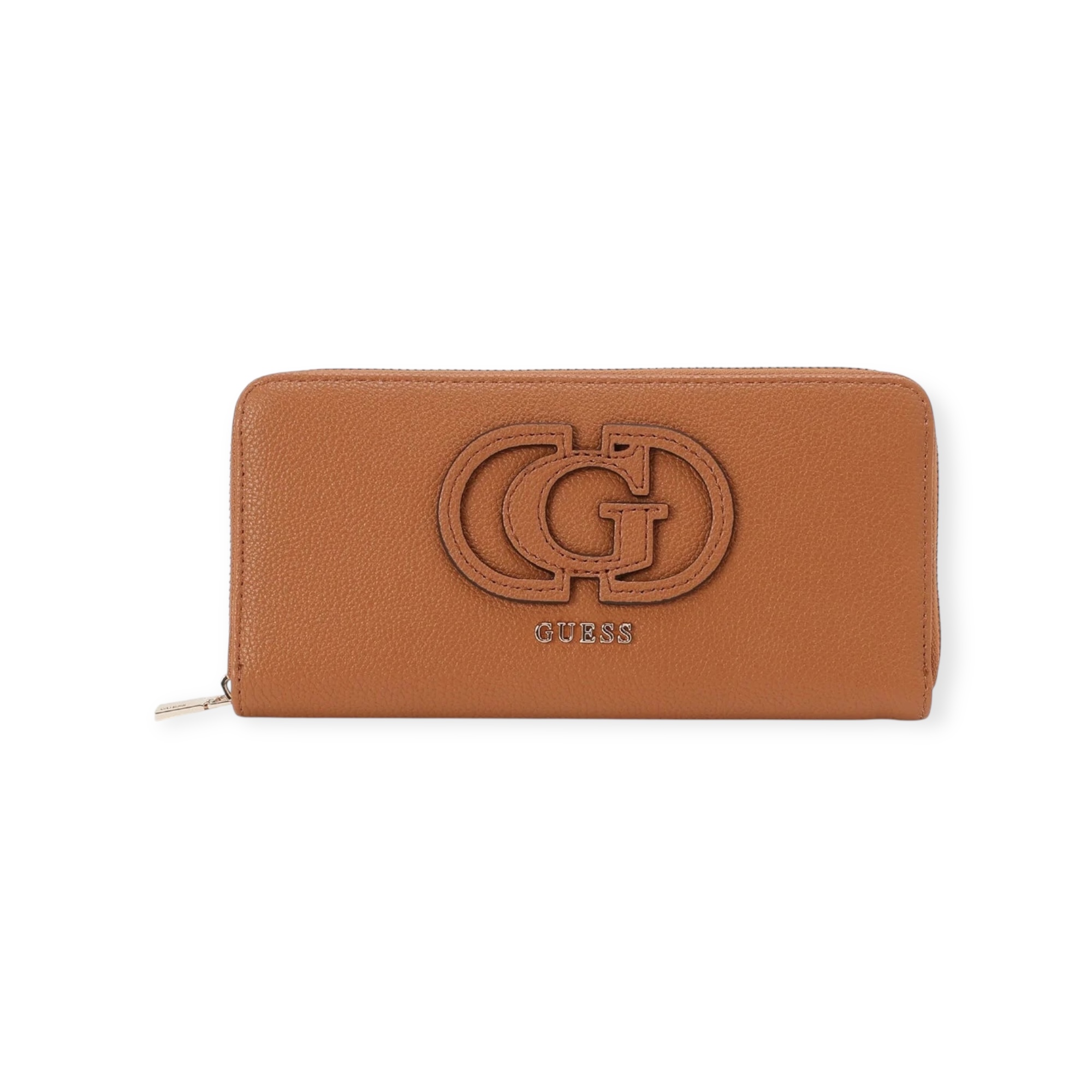 ארנק נשים אלגנטי של guess בעיצוב מלבני עם רוכסן היקפי ולוגו בולט מקדימה. כולל תאים נוחים לכרטיסים, שטרות ומטבעות – פתרון מושלם לשילוב של סטייל ופרקטיקה