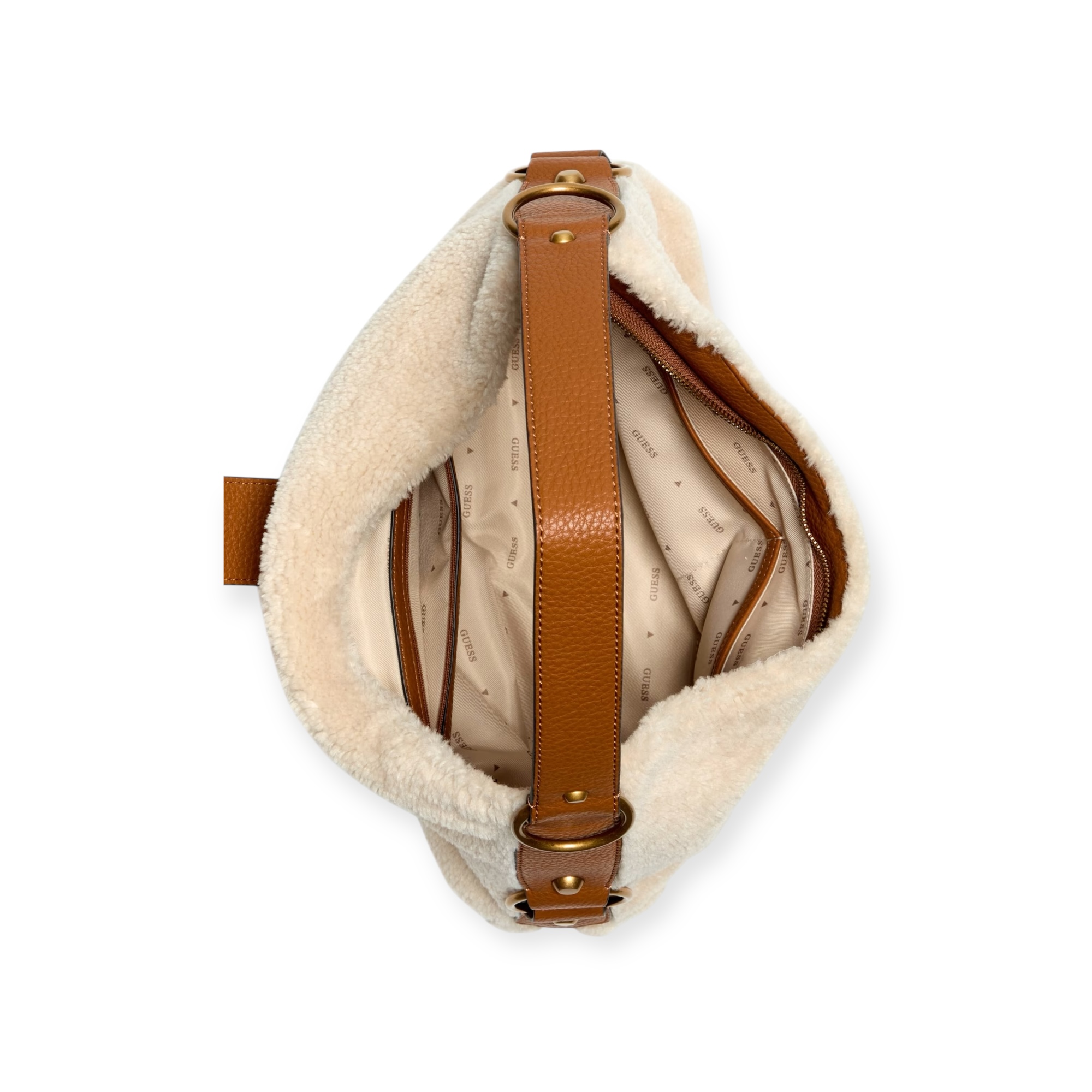 תיק צד לנשים של guess בעיצוב אלגנטי ומעודן עם שילוב טקסטורות רכות ועור מלאכותי. סוגר מתכתי דומיננטי מעניק טאץ’ יוקרתי, ורצועת כתף רחבה מאפשרת נוחות מקסימלית ביומיום. מושלם לשדרוג כל הופעה בעונות הקרות. יש רוכסן.. ללא סגירת תיק תק