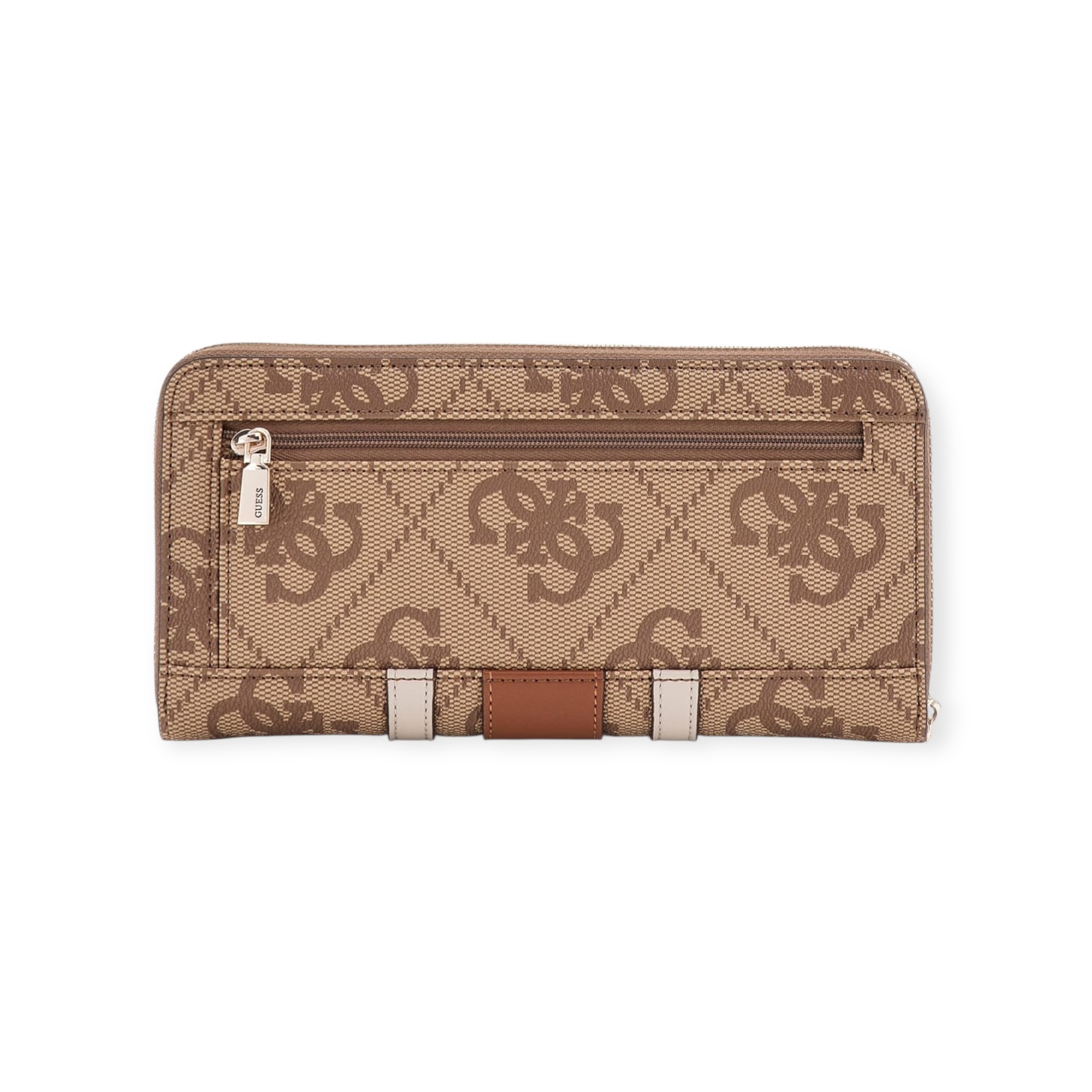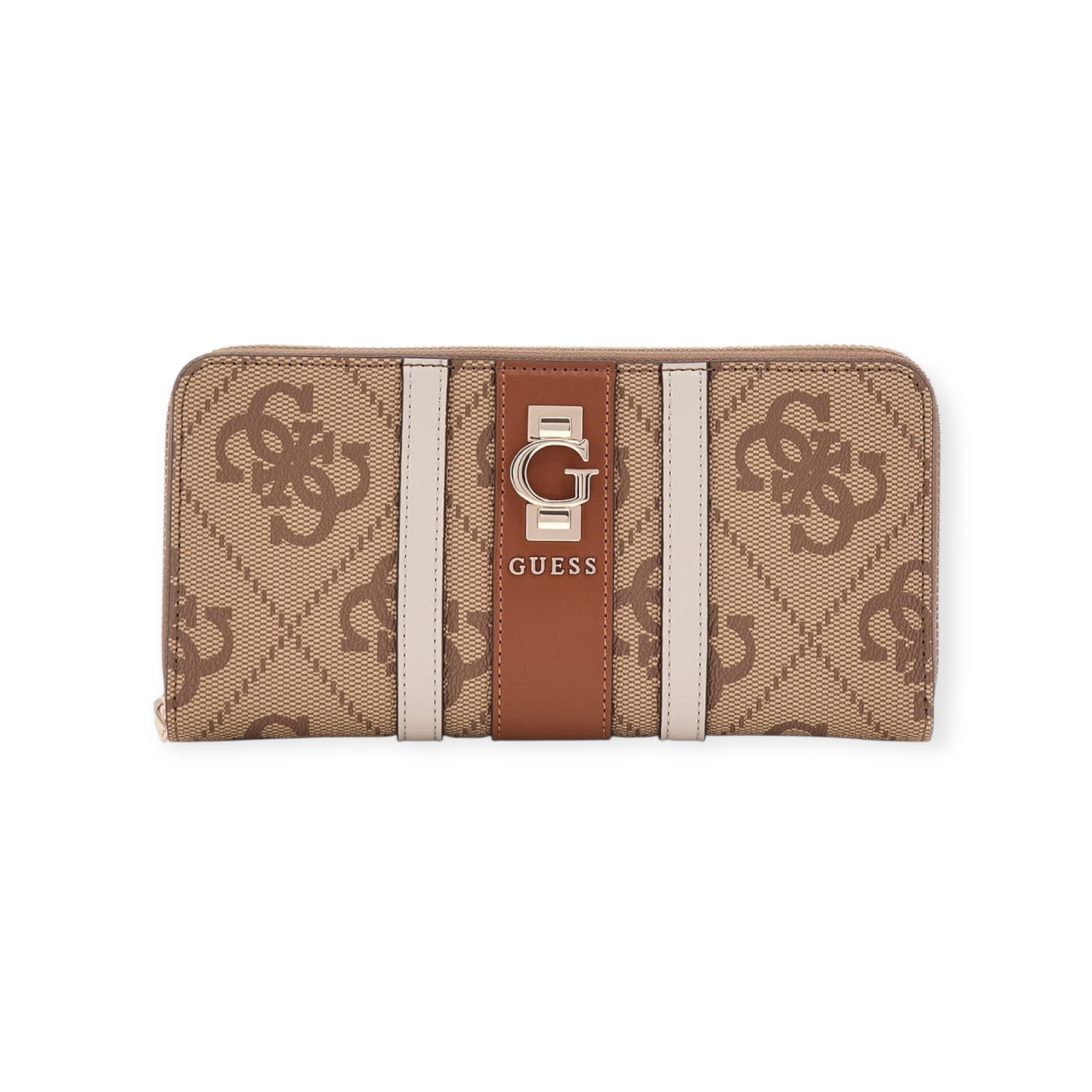 ארנק נשים אלגנטי של guess בעיצוב מלבני עם רוכסן היקפי ולוגו בולט מקדימה. כולל תאים נוחים לכרטיסים, שטרות ומטבעות – פתרון מושלם לשילוב של סטייל ופרקטיקה
