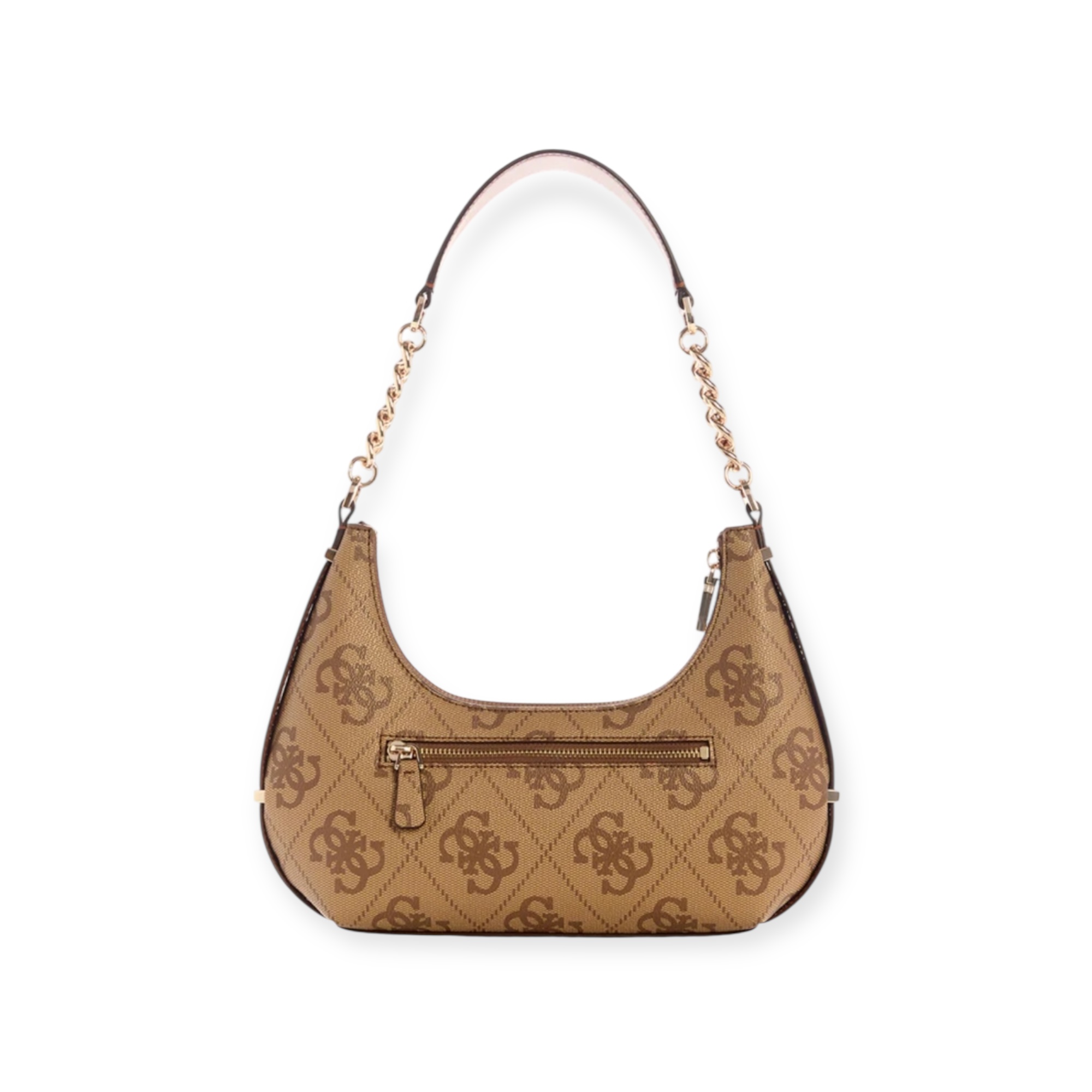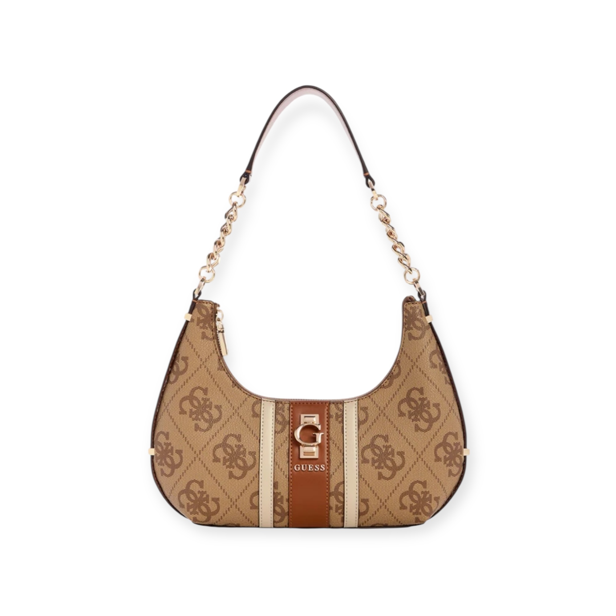 תיק כתף אלגנטי של guess, משולב דיטיילים בזהב ועור זמש לנגיעה יוקרתית ומראה אופנתי לכל שעות היום.