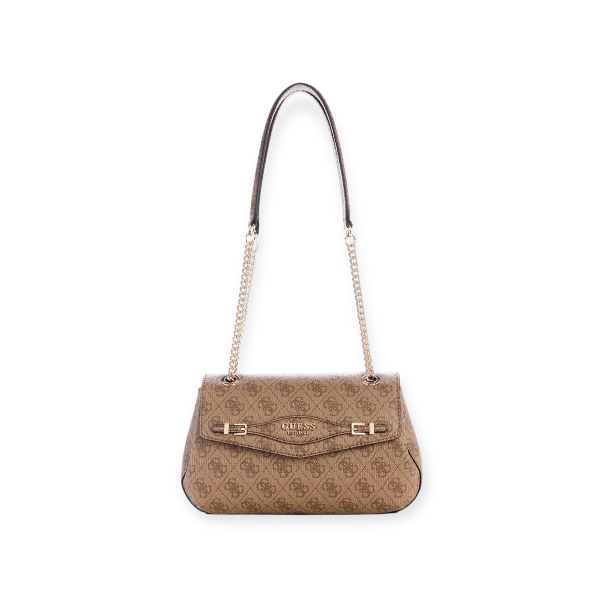 תיק guess דגם Katya Convertible Xbody Flap – עיצוב נשי אלגנטי עם רצועת שרשרת מעוצבת ולוגו מוזהב. ניתן לשאת אותו כתיק צד או כתיק כתף – מושלם למראה ערב או לשדרוג יומיומי בסטייל.
