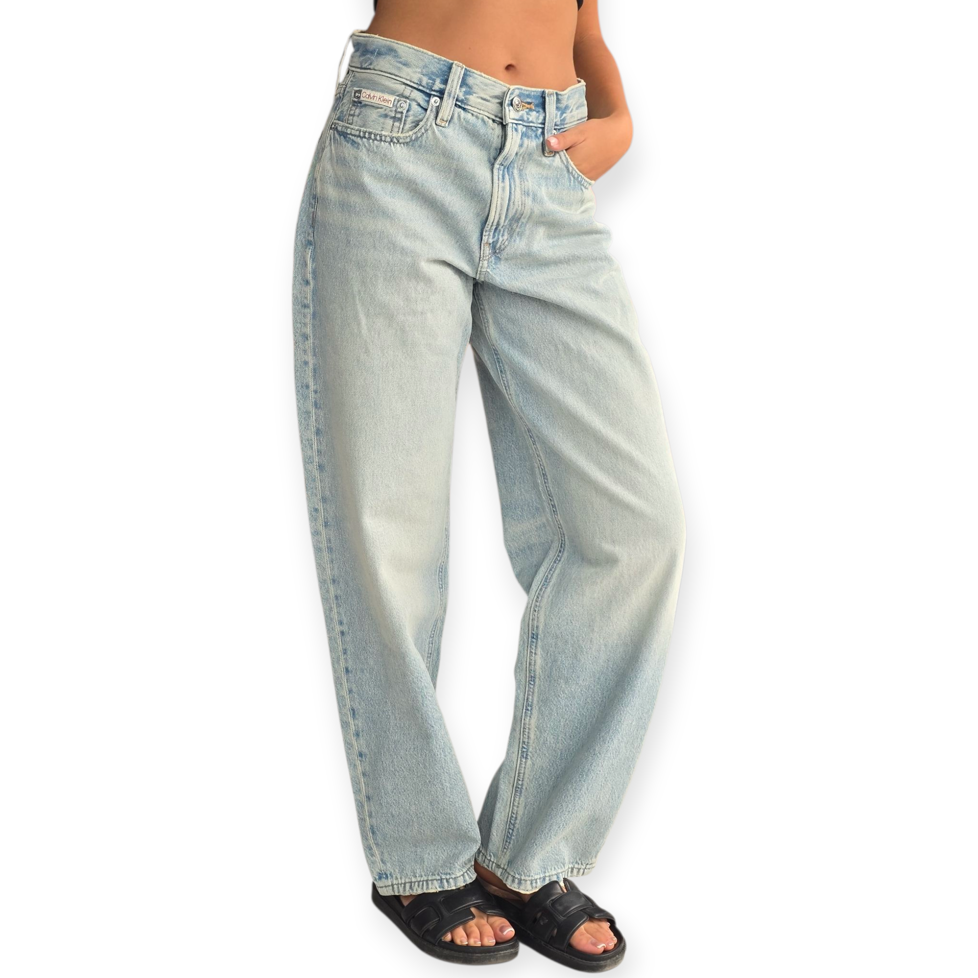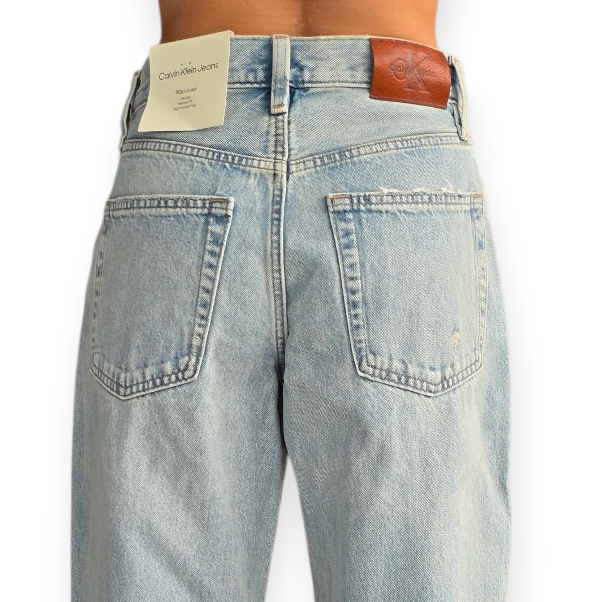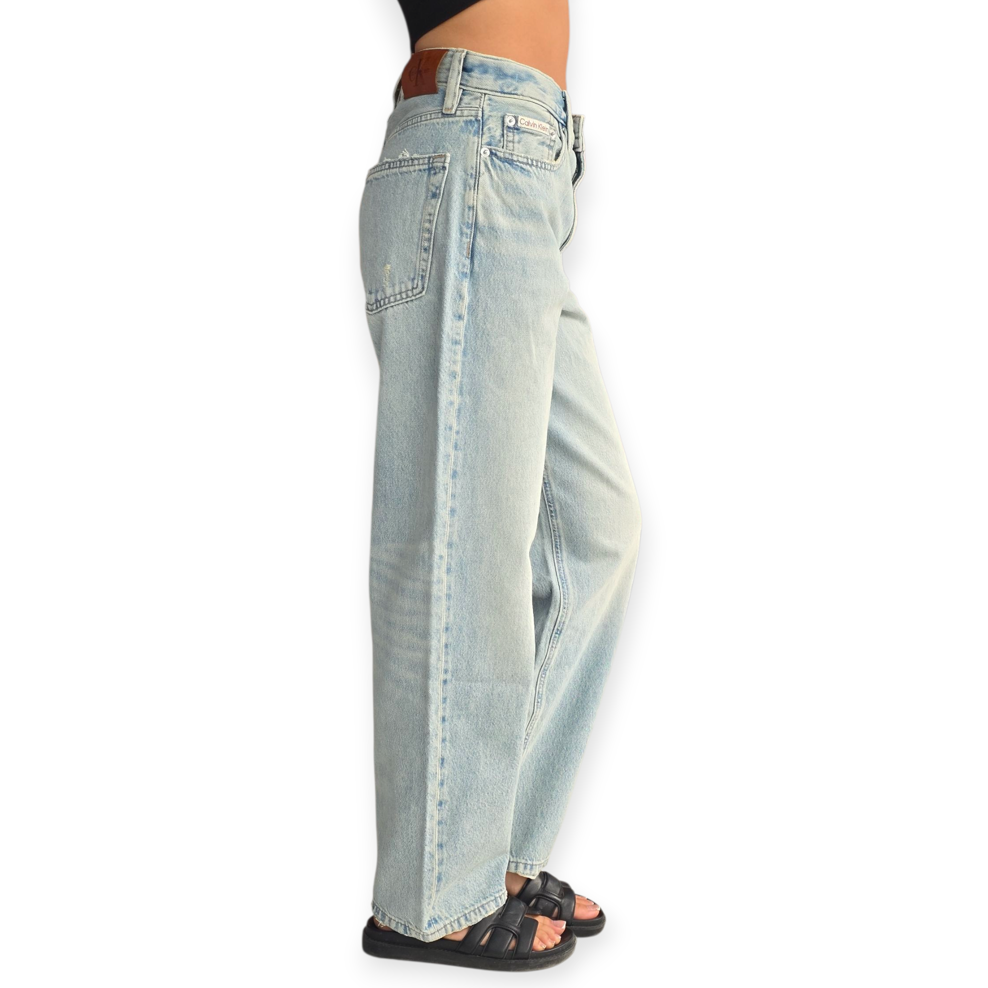 ג’ינס לוז לנשים של Calvin Klein – גזרה רחבה ונינוחה בגוון תכלת שטוף, משדר סטייל בקלות. מושלם ללוק קז’ואל עם סניקרס או קרופ קיצי.