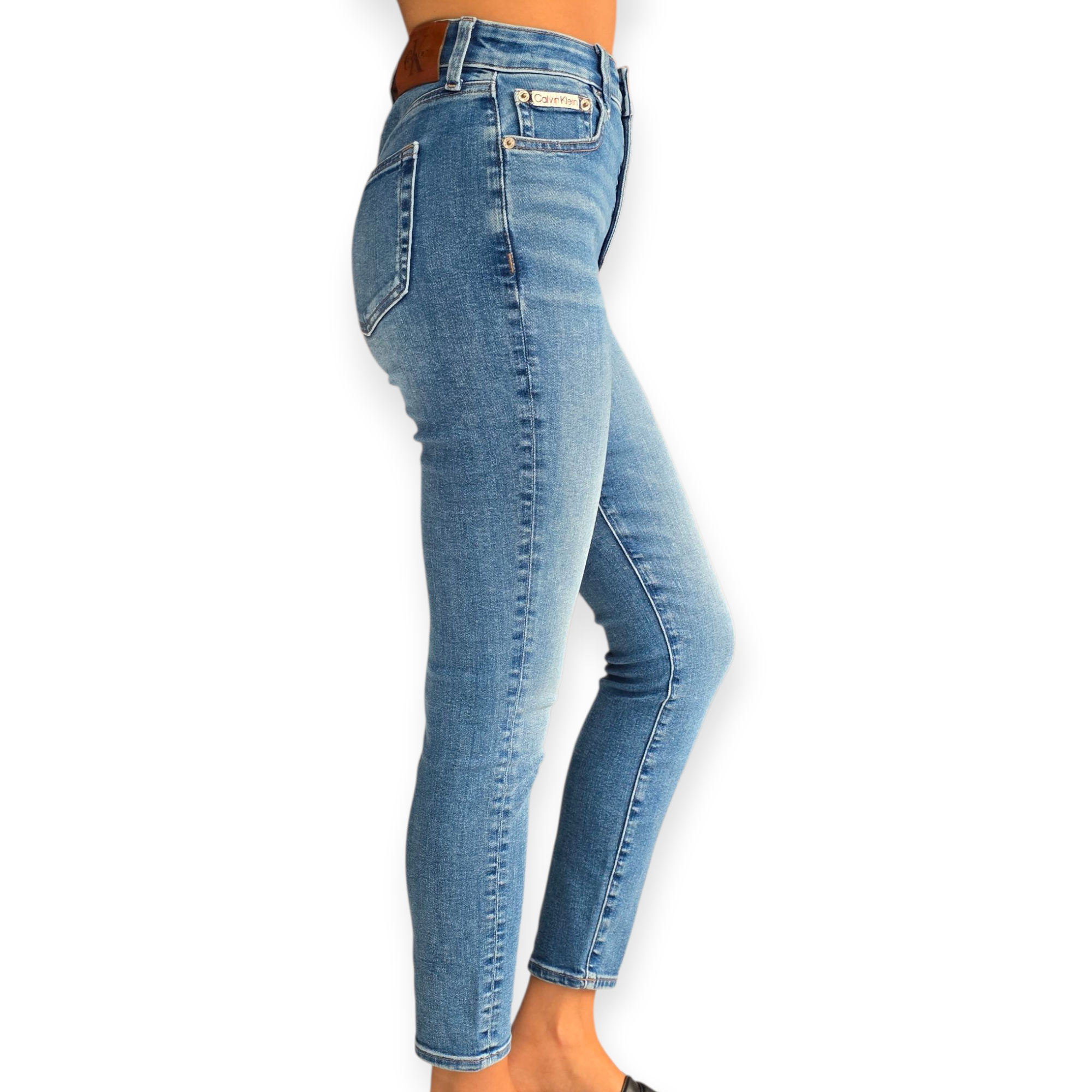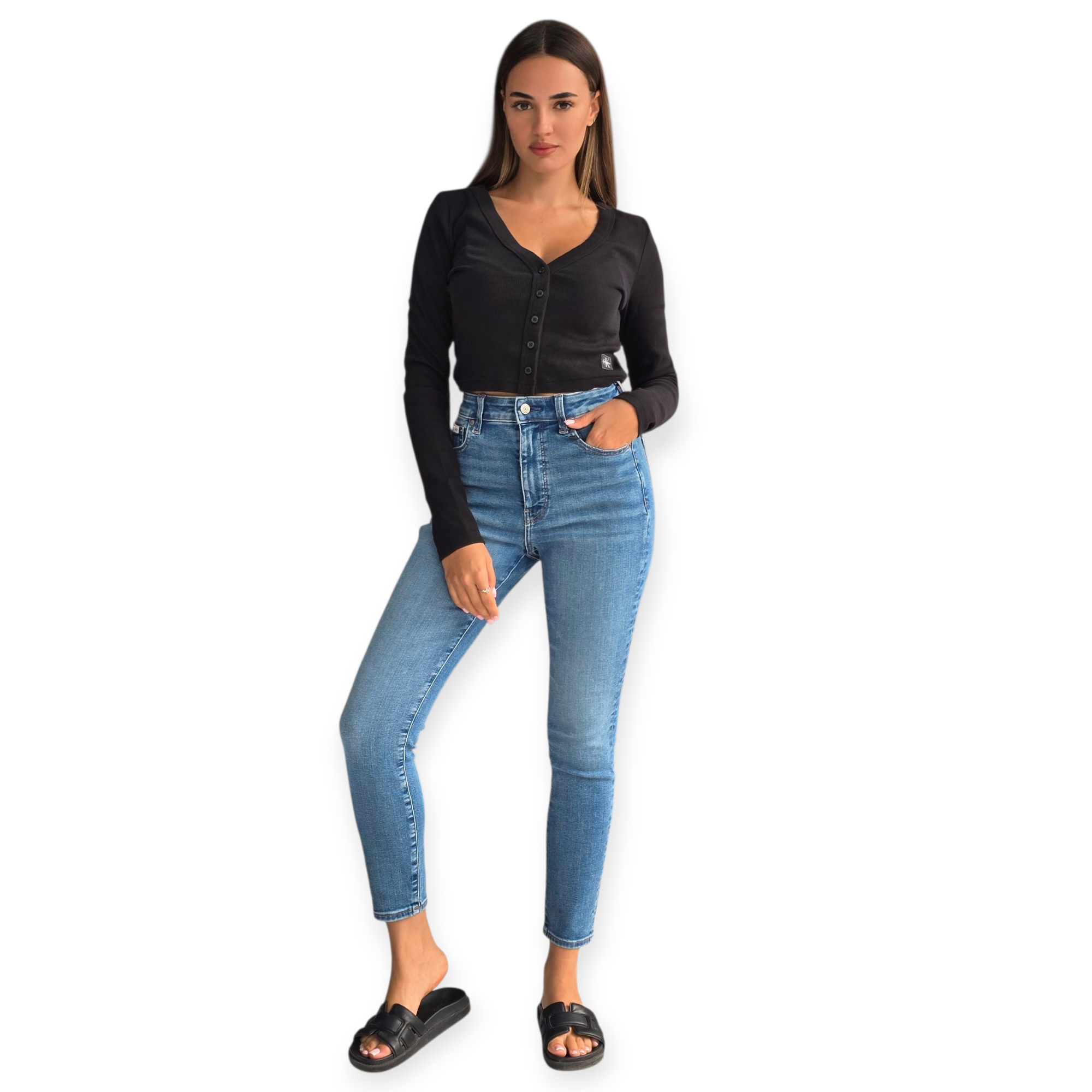 סקיני ג’ינס לנשים מבית calvin klein בגזרה גבוהה שמחטבת את הגוף ויושבת מושלם. גוון כחול קלאסי שמתאים לכל עונה ולכל הופעה. Must-have בארון.