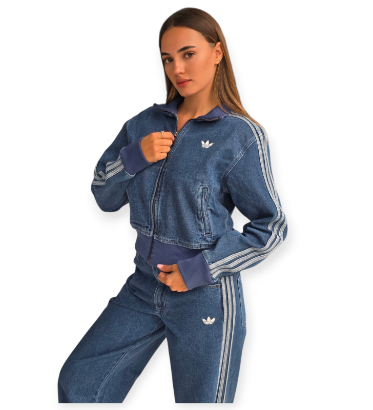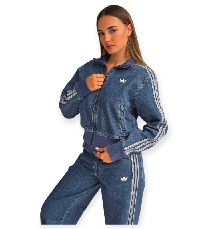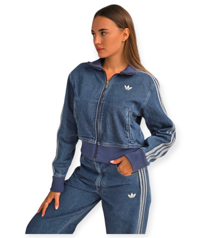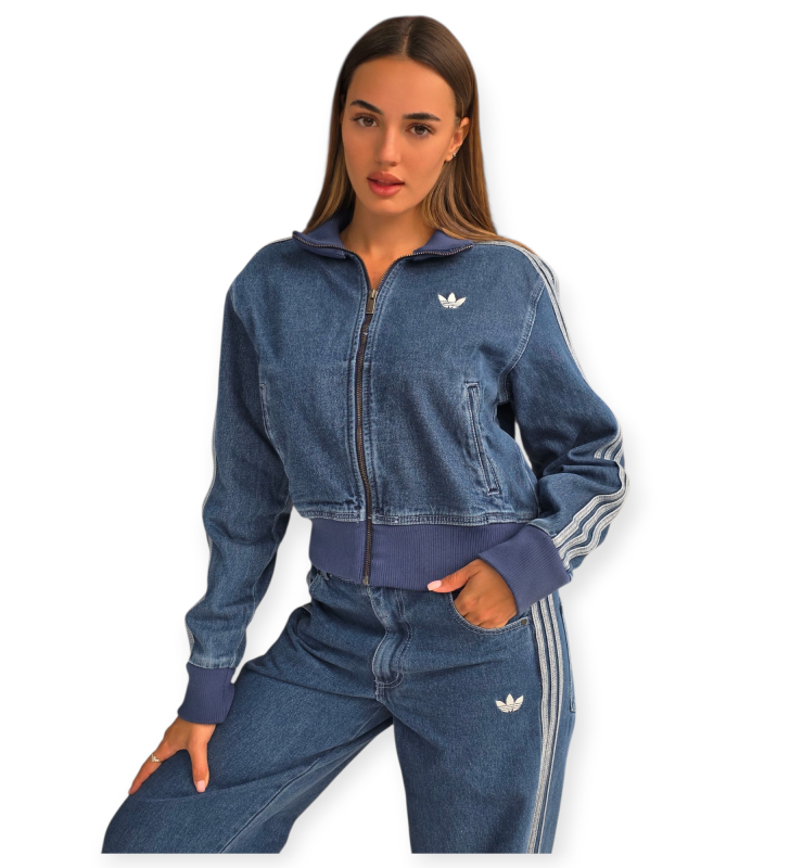 ז’קט דנים מבית adidas originals בגזרת טרנינג קלאסית עם צווארון גבוה ורוכסן מלא. עיצוב רטרו־עדכני עם פסים אייקוניים לאורך השרוולים ולוגו Trefoil קטן בחזה. שילוב מושלם בין סטייל ספורטיבי לאורבני, מתאים לכל לוק יומיומי.