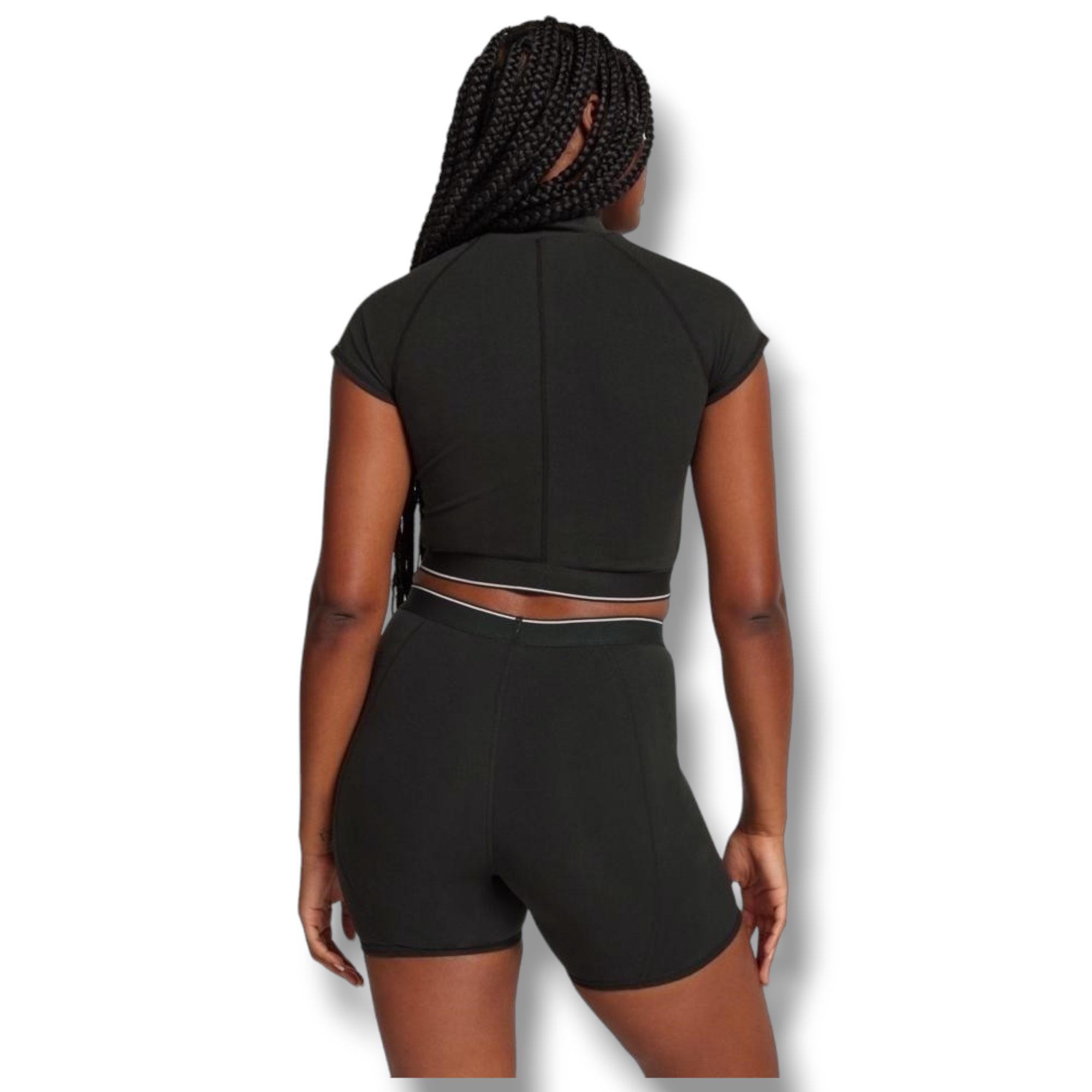 מעוצב עם תערובת כותנה אורגנית מותאמת, טופ השרוולים הקצרים של טרינה לוגו הוא הבחירה הרב-תכליתית שלך במזג אוויר חם למראה מהנה מחמיא.