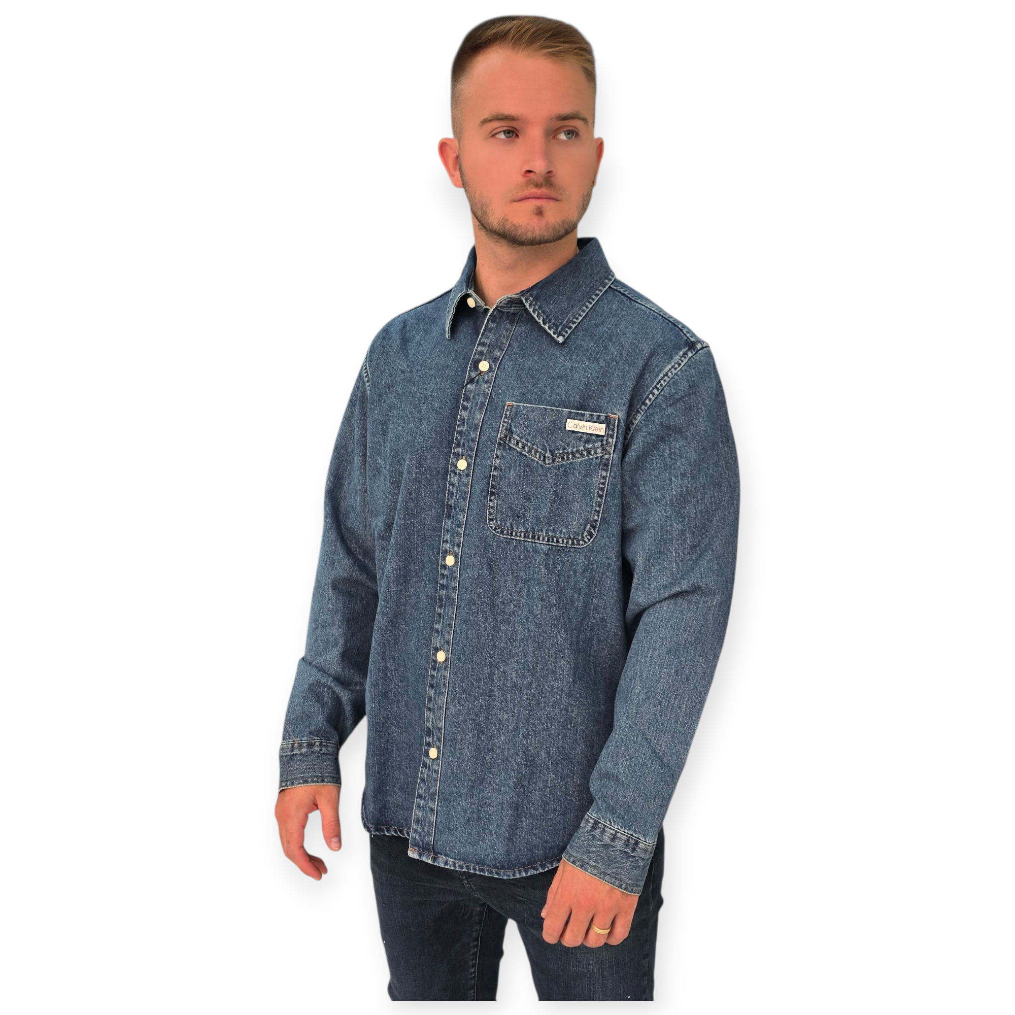 חולצת ג’ינס לגבר calvin klein – קלאסית עם כיס קדמי ולוגו עדין, מושלמת למראה יומיומי עם טאץ’ אלגנטי.