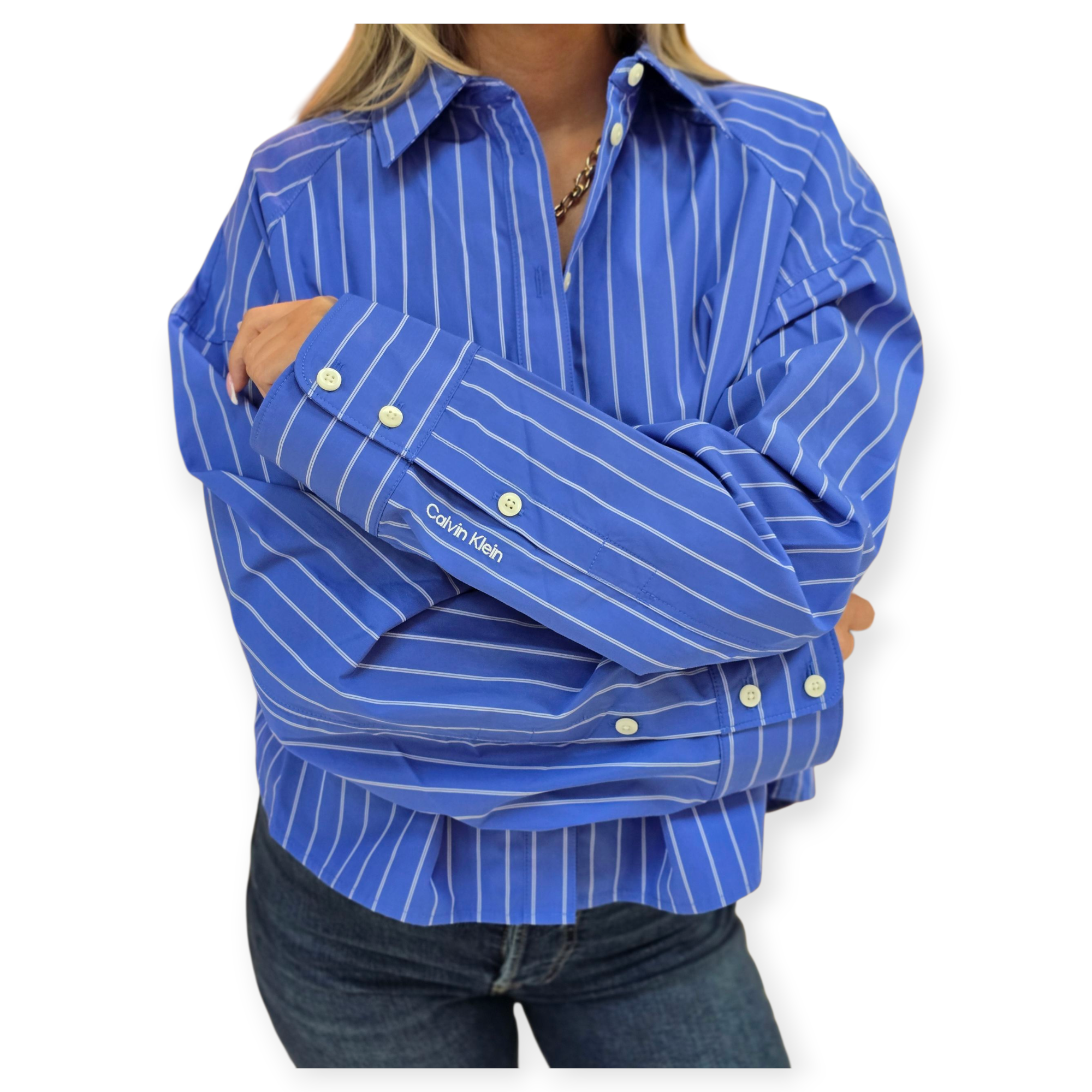 חולצת פסים נשית מבית ck – גזרה משוחררת עם מראה קלאסי ומעודכן. בד נעים, כפתרה קדמית ושרוולים ארוכים עם חפתים רחבים, מושלמת לשילוב ביום עבודה או ביציאה קלילה.