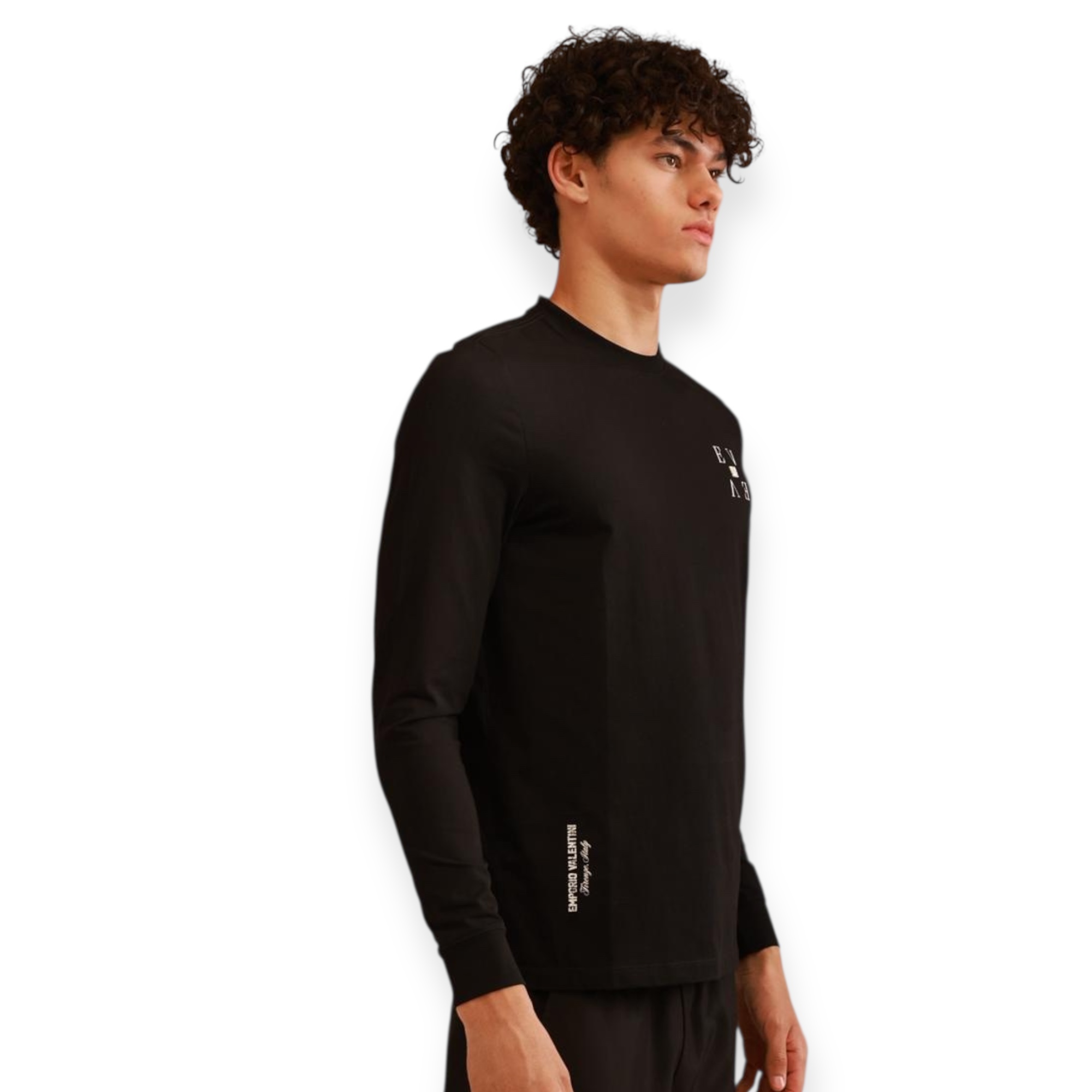חולצת גברים ארוכה בגזרה קלאסית ונקייה. עשויה בד כותנה ולייקרה , עם הדפס לוגו מרכזי בחזה למראה אלגנטי ויומיומי.