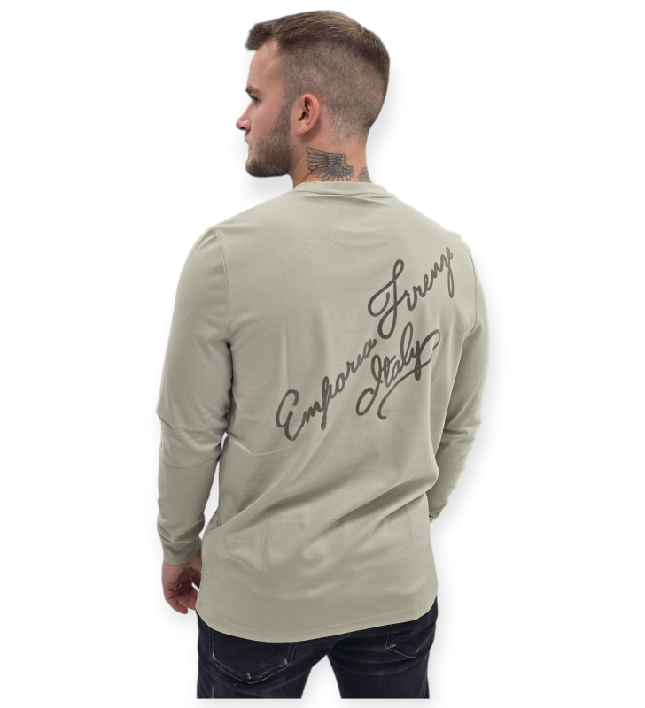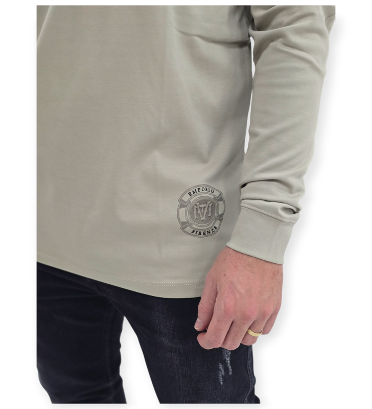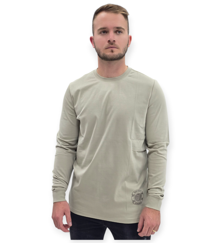 חולצת גברים ארוכה בגזרה קלאסית ונקייה. עשויה בד כותנה ולייקרה , עם הדפס לוגו מרכזי בחזה למראה אלגנטי ויומיומי.