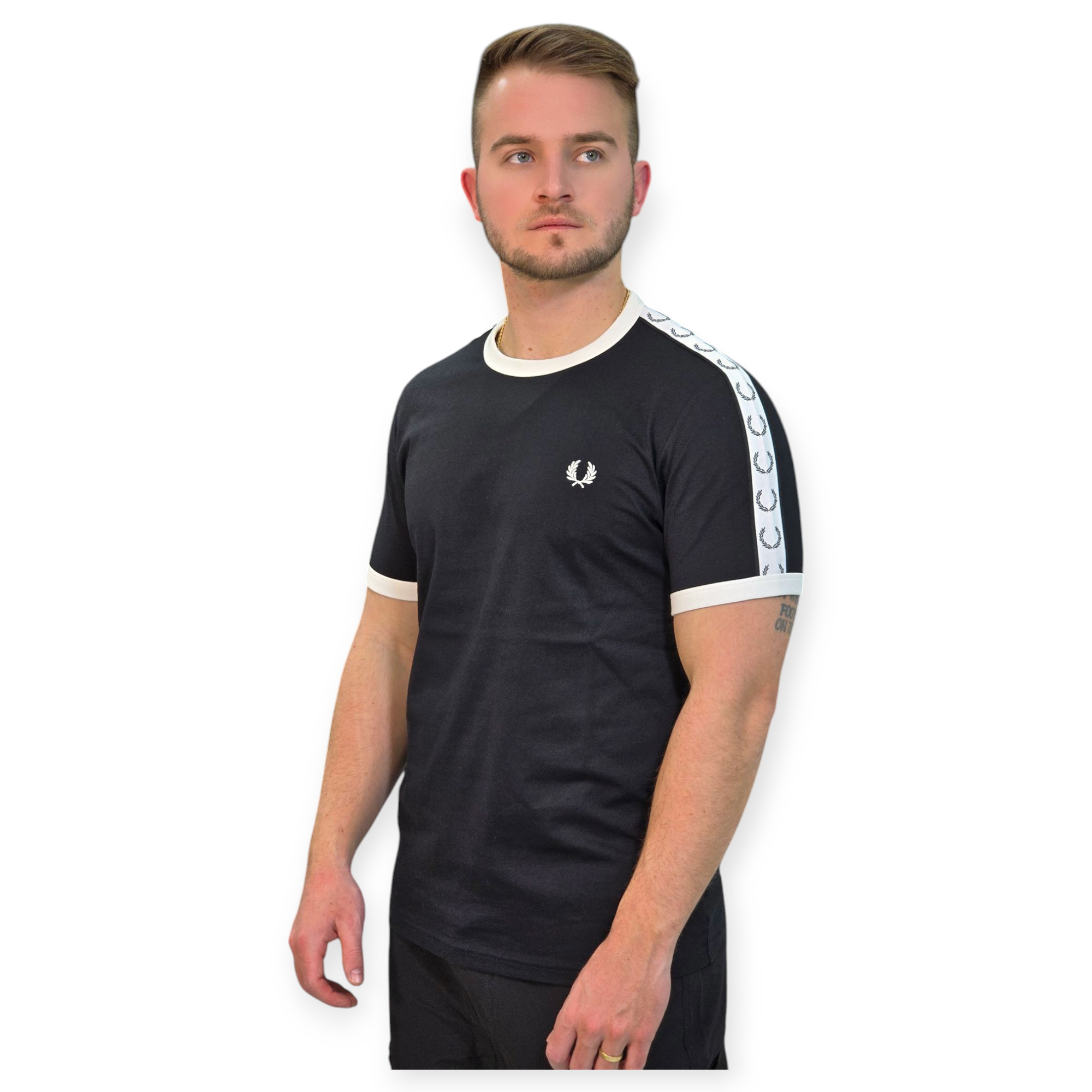 חולצת טי שירט עם לוגו המותג ושרוולים קצרים …. מידות הדוגמן M ..גובה הדוגמן 1.80