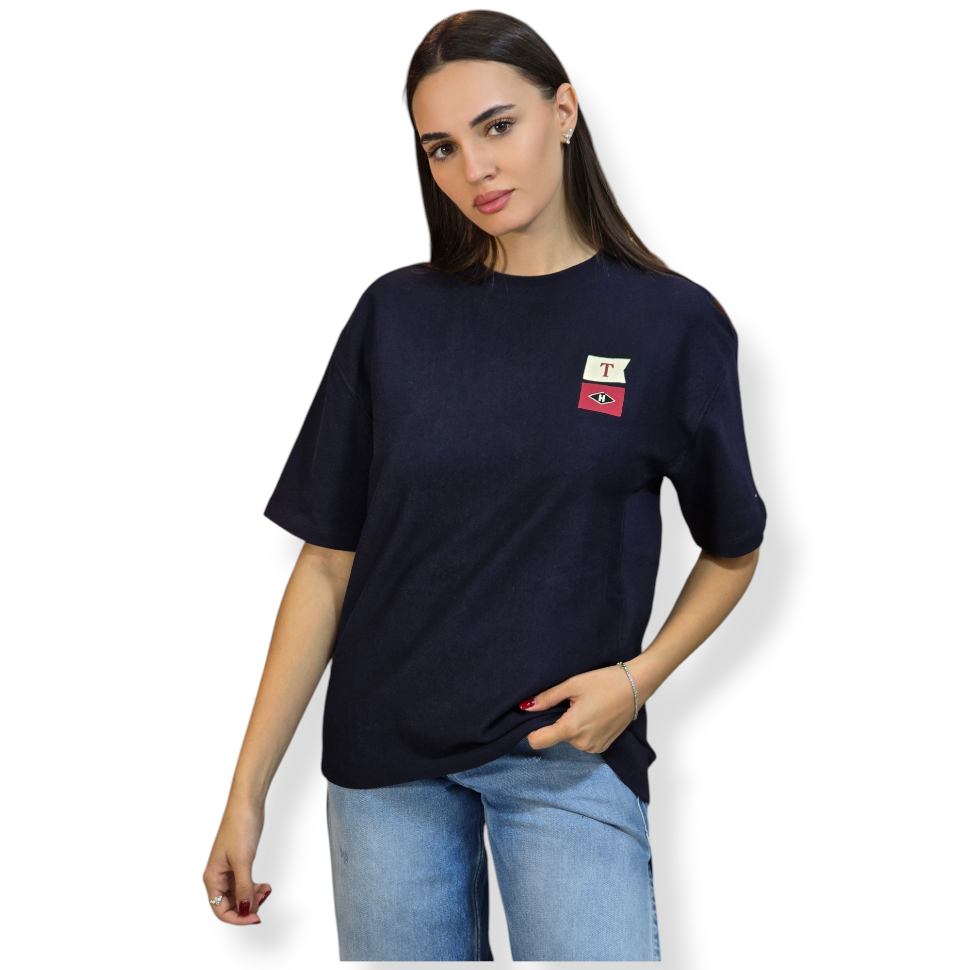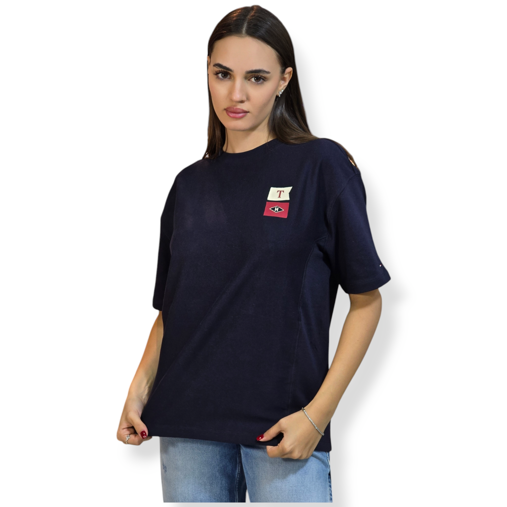 חולצה של tommy hilfiger קטגוריית נוער 14=XS   מידה 16=S הדוגמנית בתמונה לובשת 14