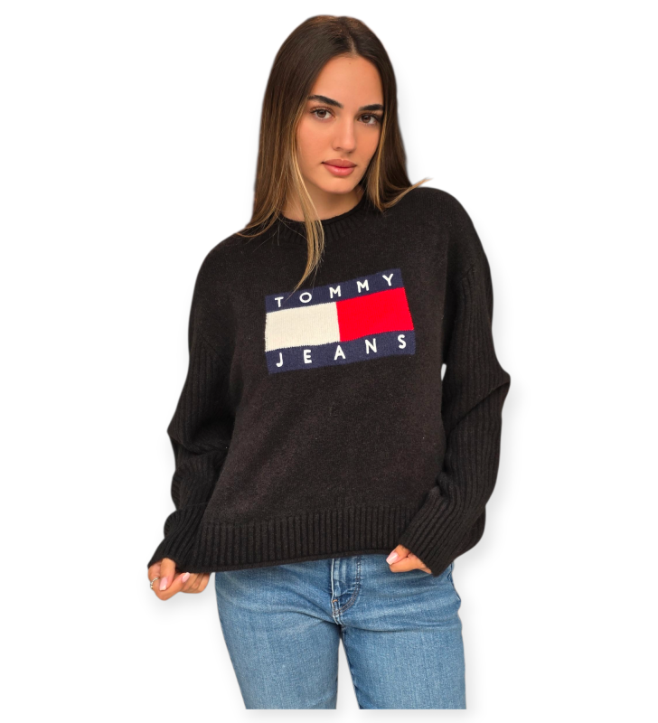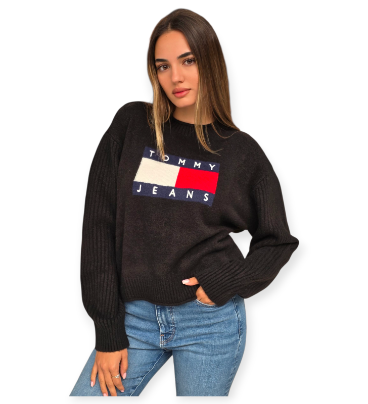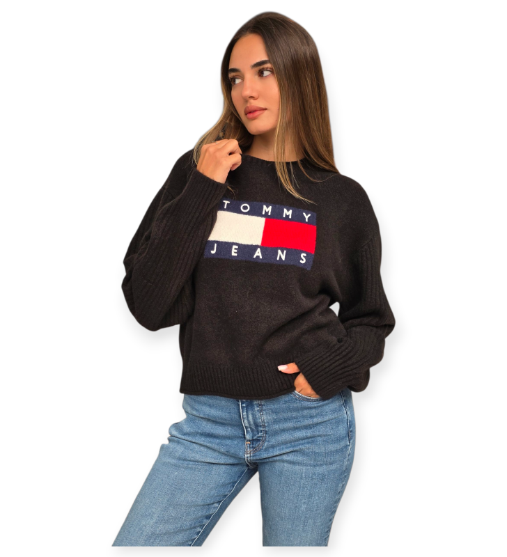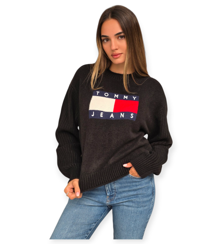 סווטשירט צמר נעים מבית tommy jeans, עם לוגו הדגל האייקוני במרכז. גזרה קלאסית עם שרוולים ארוכים וסיומת ריב שמעניקה טאץ’ נקי ומדויק – מושלם לשילוב יומיומי עם ג’ינס או שכבות אלגנטיות.