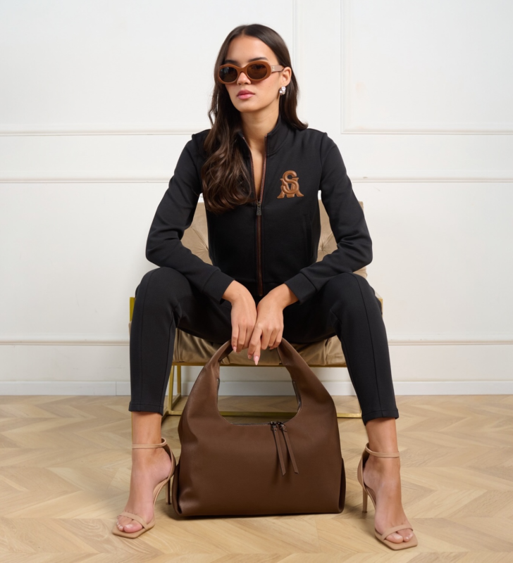חליפת נשים steve madden interlock בעיצוב מחויט ונקי. ג’קט עם רוכסן מלא ומכנס תואם, בד אינטרלוק איכותי שמעניק מראה מהודק ונוח, עם לוגו מודפס עדין. מושלם לשילוב של סטייל יומיומי ונוחות.