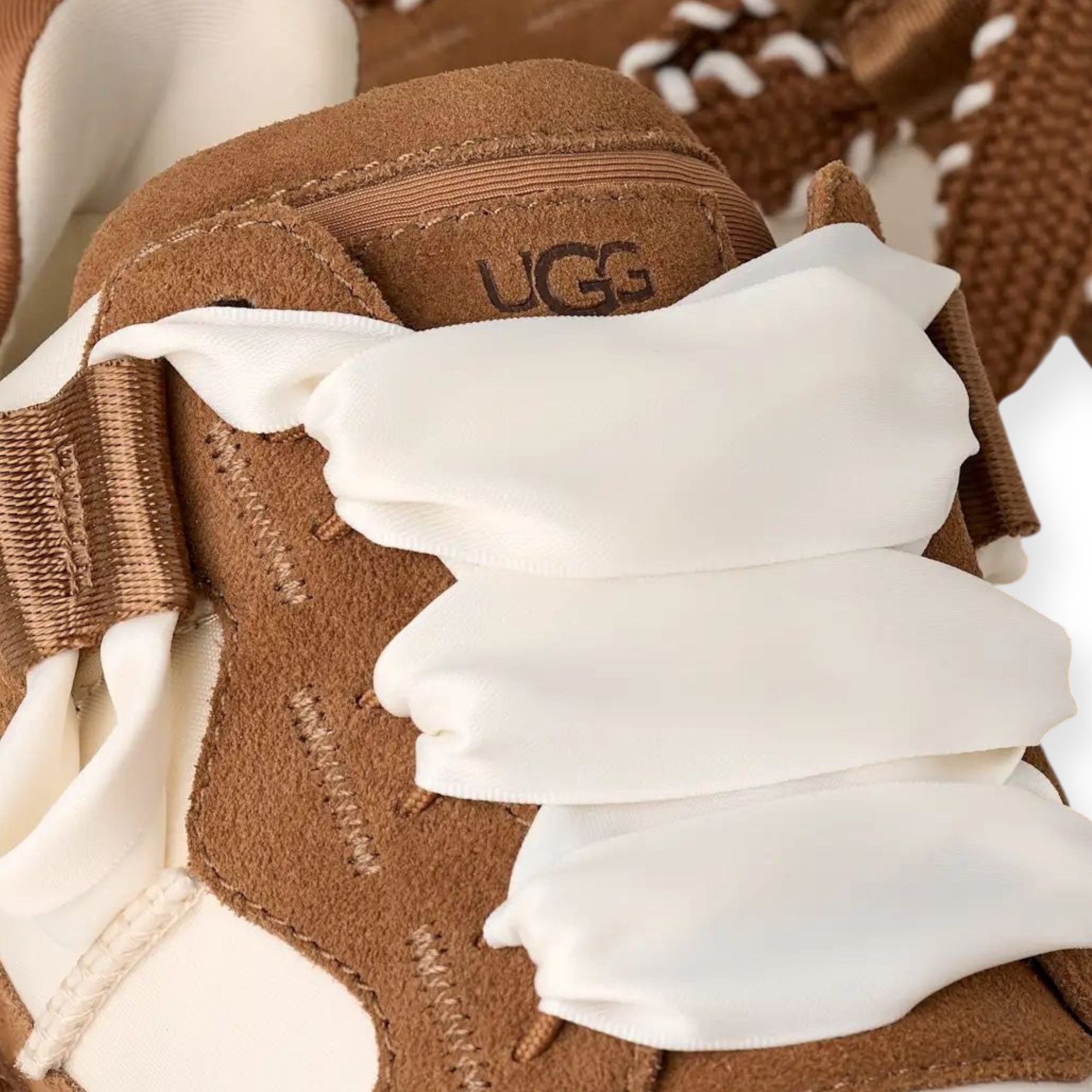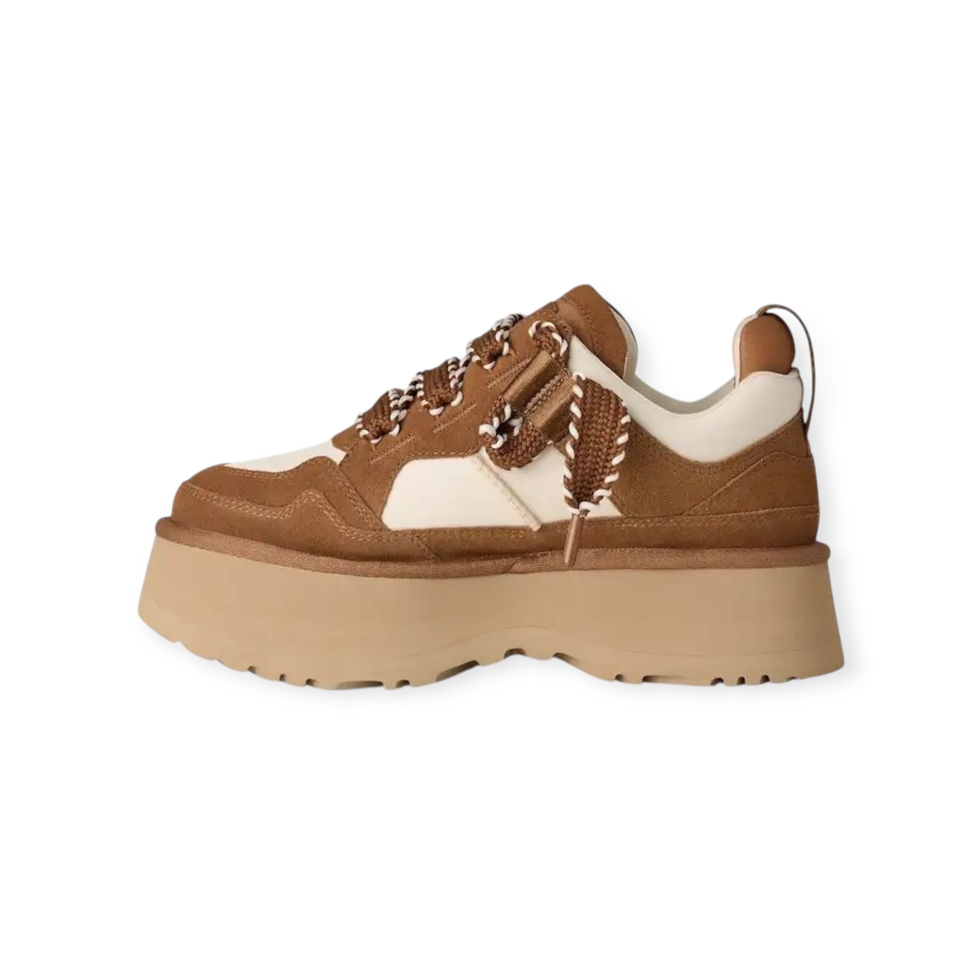 נעלי פלטפורמה לנשים ugg מדגם Astromel בצבע חום – שילוב חדשני של זמש, ניילון וטקסטיל ממוחזר עם תפרים כפולים ולשון מרופדת. פלטפורמה בגובה 5 ס”מ, רפידת EVA נוחה, ובטנה רכה. כוללות שני סטים של שרוכים – סאטן אופנתי ושטוחים לקשירה יציבה. סטייל ייחודי ונוחות מבית ugg.