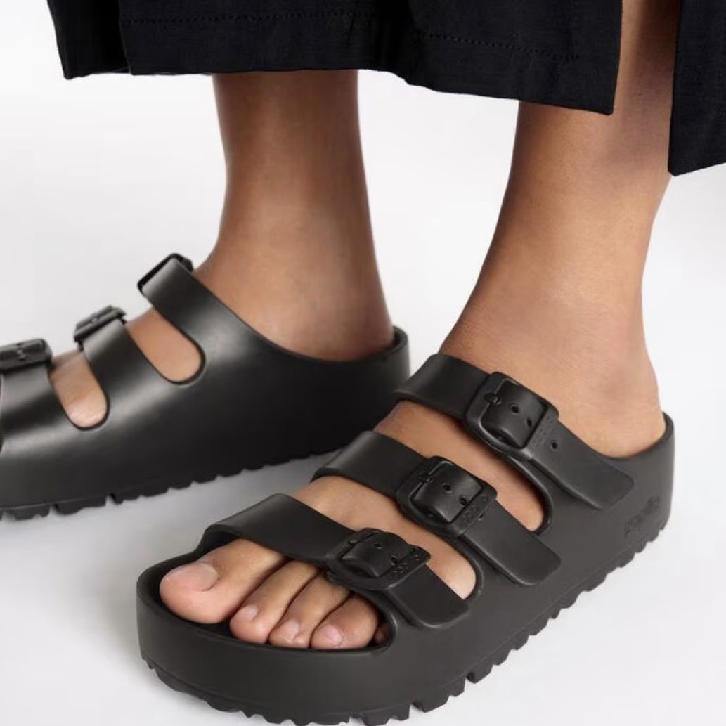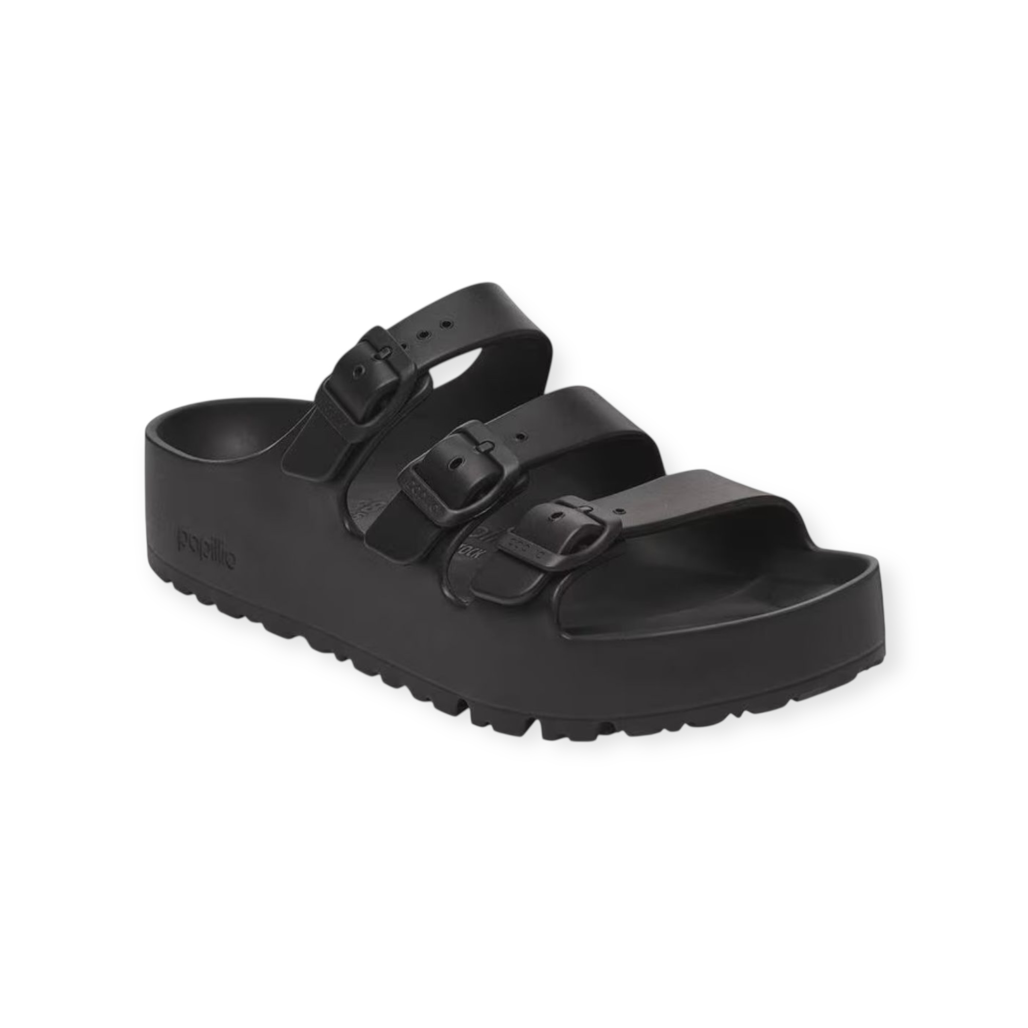 פלורידה Papillio משלב שניים מהסגנונות הקלאסיים ביותר של Birkenstock. עם שלושת הרצועות הקלאסיות מפלורידה וסוליית פלטפורמה מסוגננת עם קו עמוק במיוחד מה-Papillio, מובטח לך להישאר בנוחות ובסטייל כל היום.
