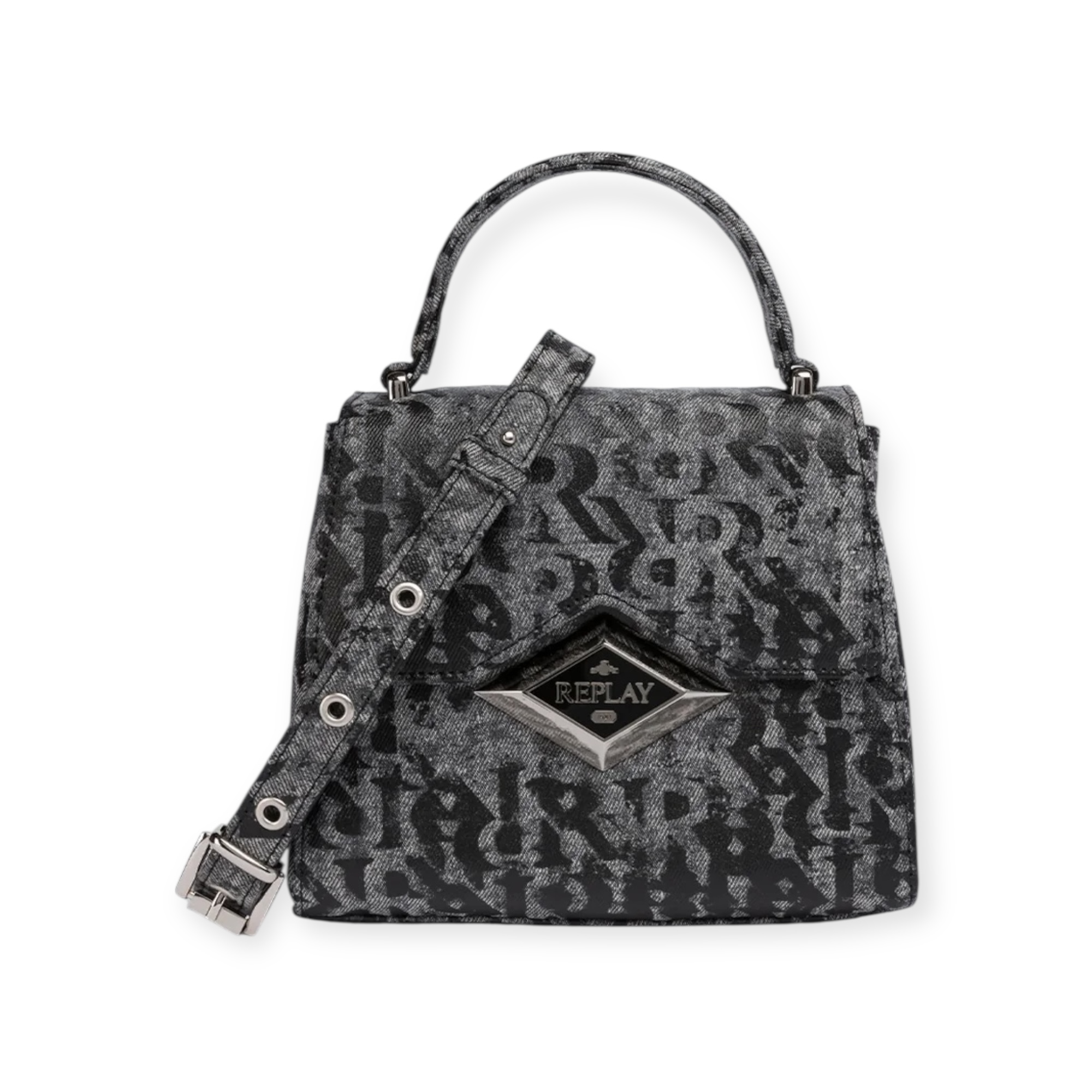 תיק צד לנשים מבית replay בעיצוב יוקרתי עם דוגמת מונוגרם וטקסטורה ייחודית. כולל שרשרת מתכת אלגנטית ולוגו מתכת בחזית – מושלם למראה ערב או יום-יום עם טוויסט אופנתי.