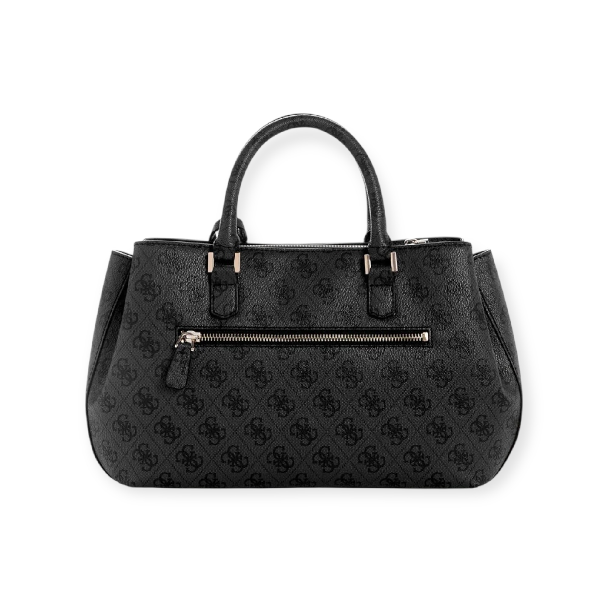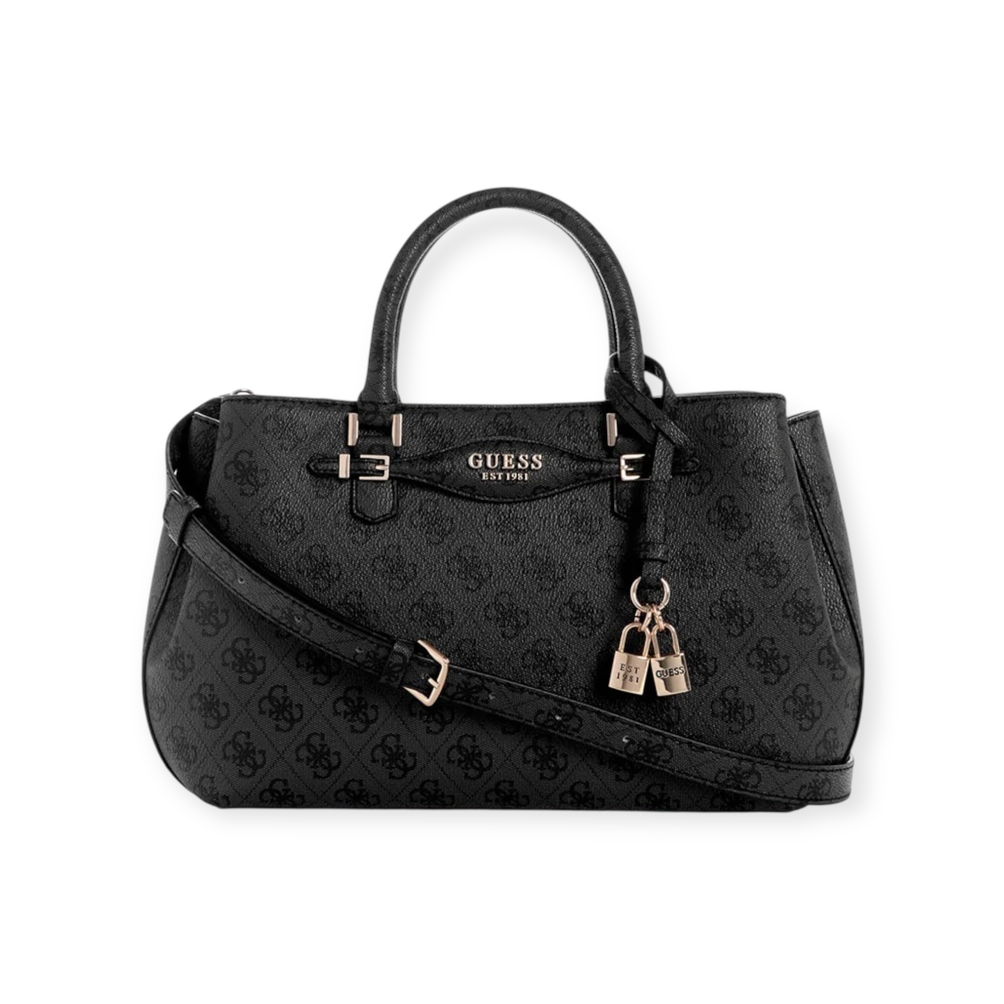 תיק guess דגם Girlfriend Satchel – קלאסיקה נצחית בשחור עם מונוגרם יוקרתי, סגירה עם רוכסן, ידיות נשיאה ורצועת כתף מתכווננת. מגיע עם תליון מנעולים מוזהבים להשלמת הלוק. לוקחת אותך באלגנטיות מהבוקר לערב.