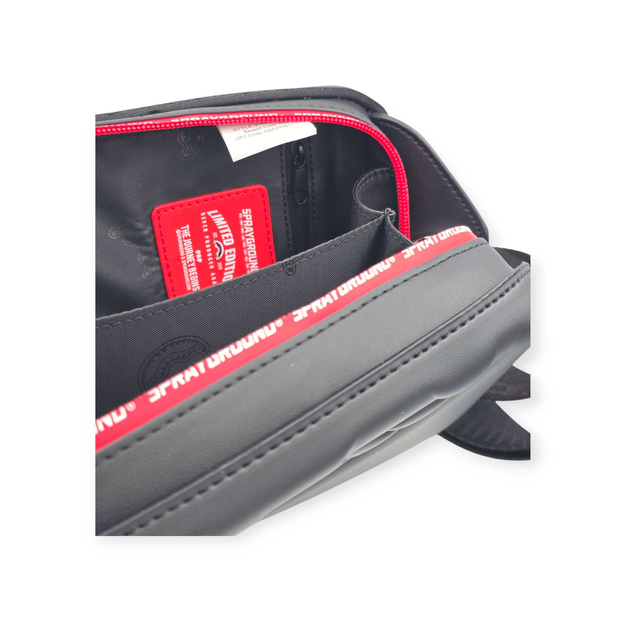 תיק צד לגברים של sprayground בעיצוב קשיח וייחודי עם הטבעת שיניים אייקונית. סגירת רוכסן כפולה עם פרטים באדום ולוגו בולט, ורצועה מתכווננת לנשיאה נוחה. שילוב מושלם בין סטייל עוצמתי ופונקציונליות.